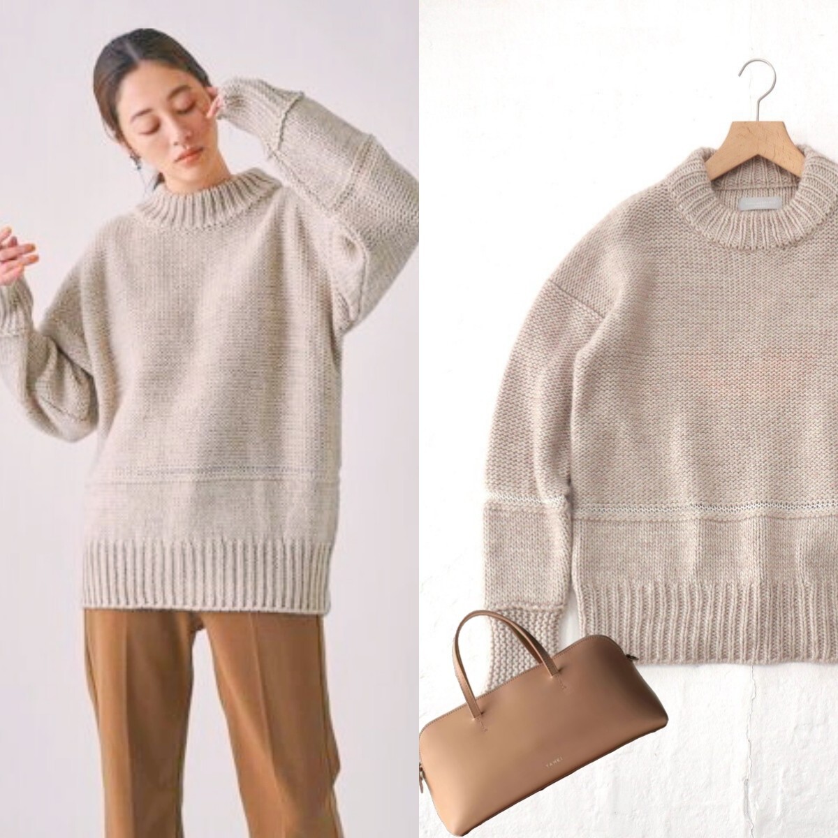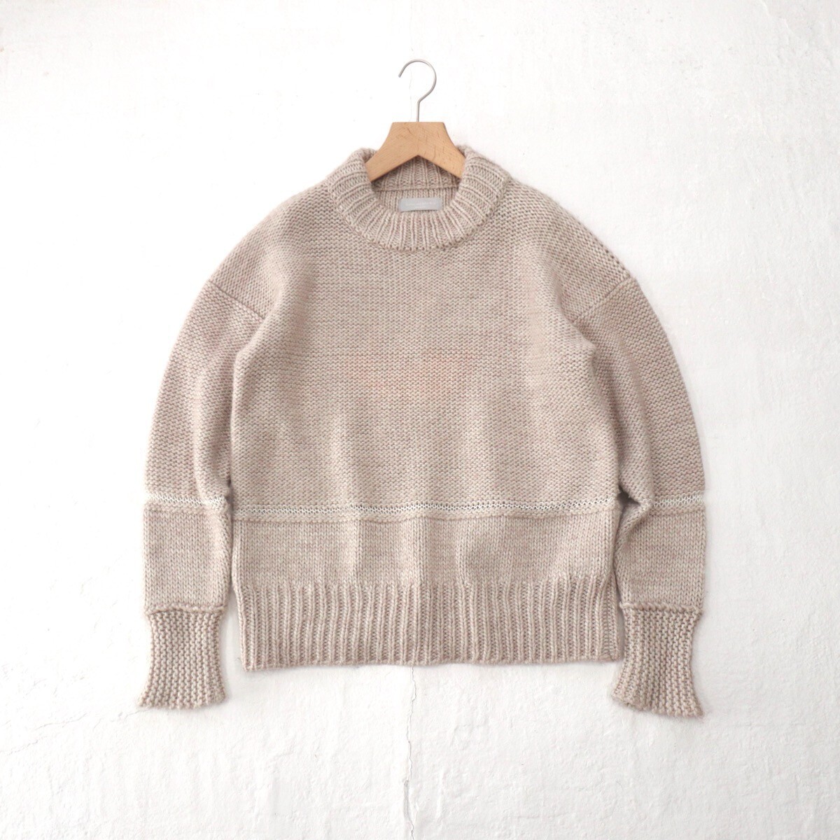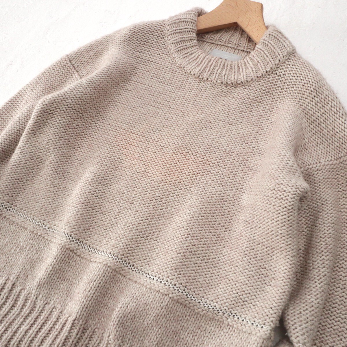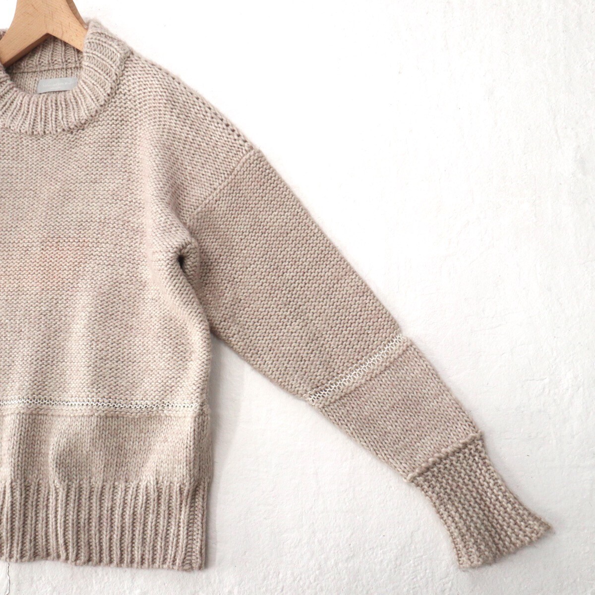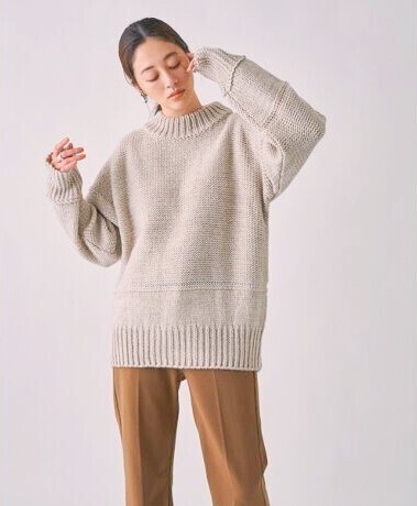 アクセントの透かし柄部分は異なる糸で編まれたナチュラルテイストのニットです。