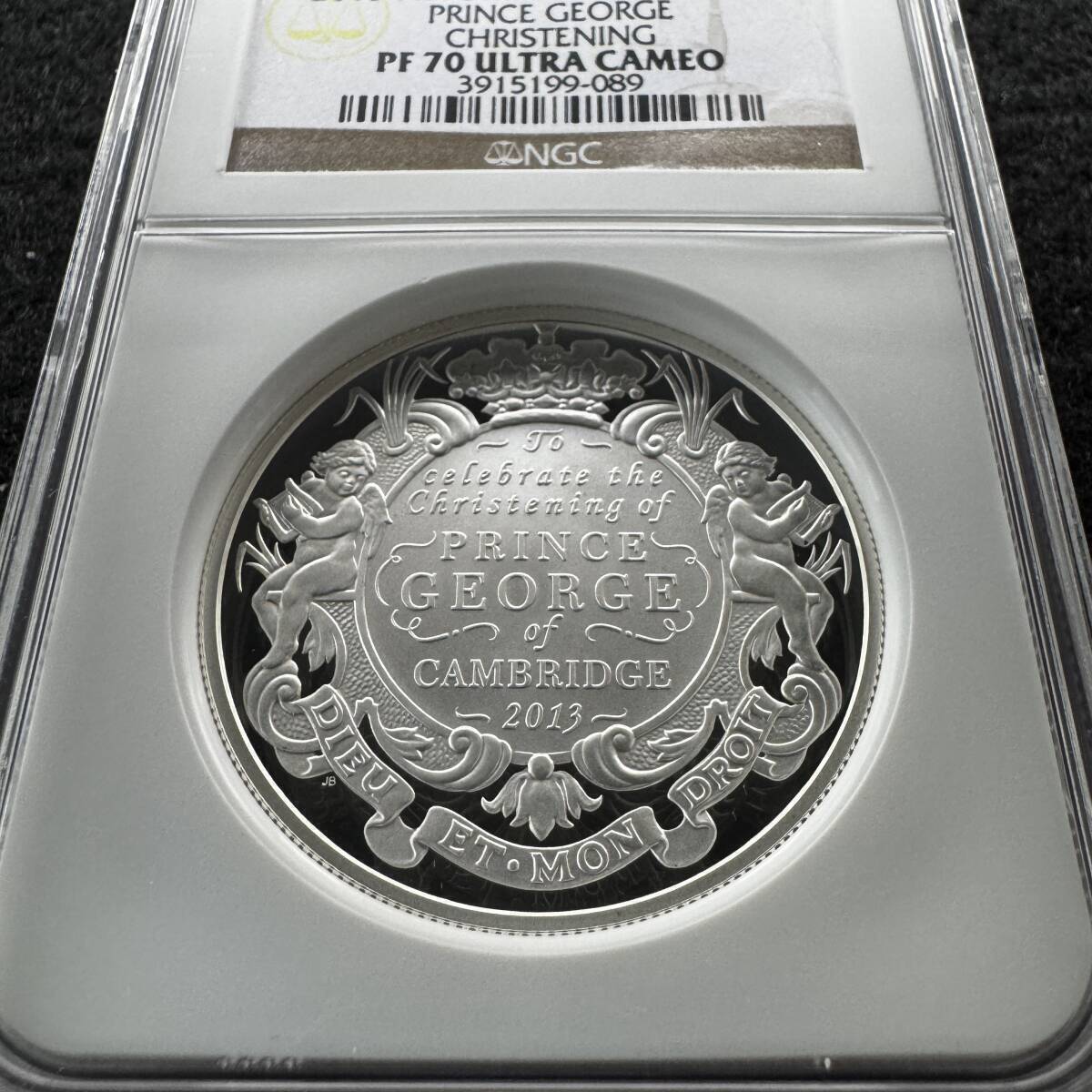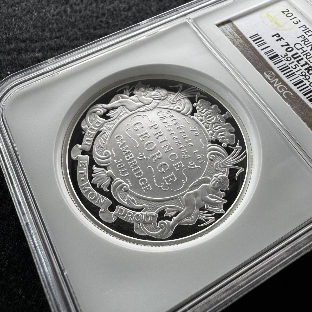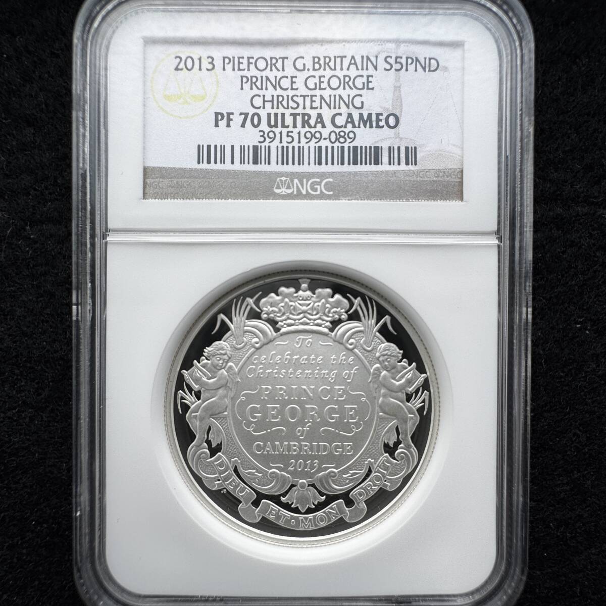 『最高鑑定』2013年 イギリス プリンスジョージ洗礼記念銀貨 ピエフォー 5ポンド 銀貨 NGC PF70 ULTRA CAMEO 木製ケース