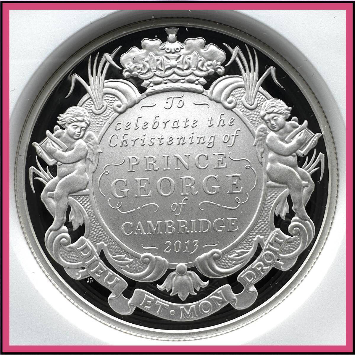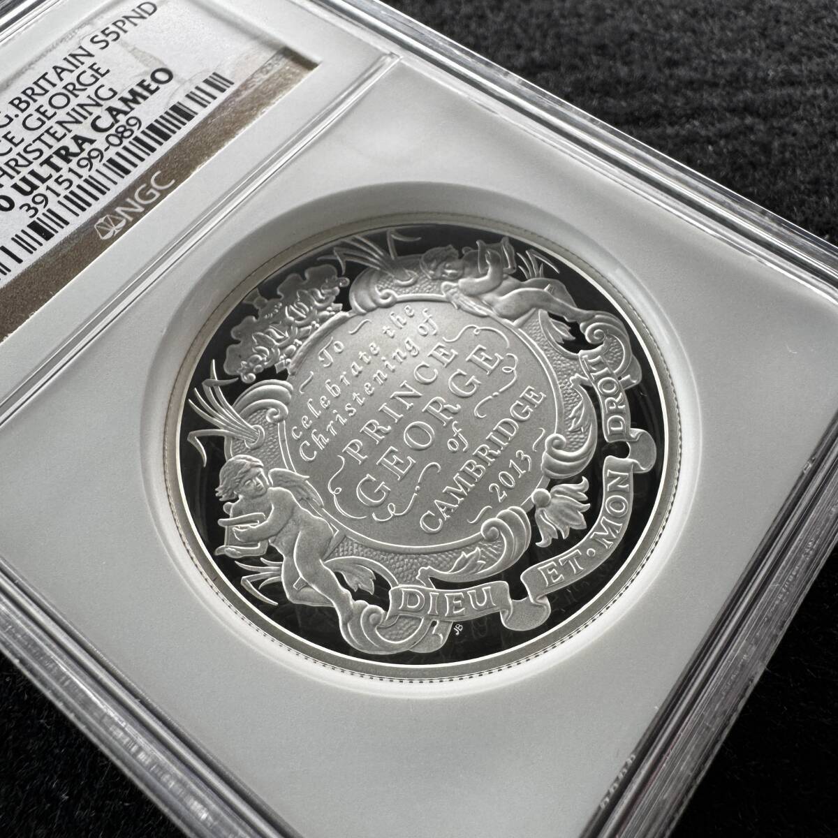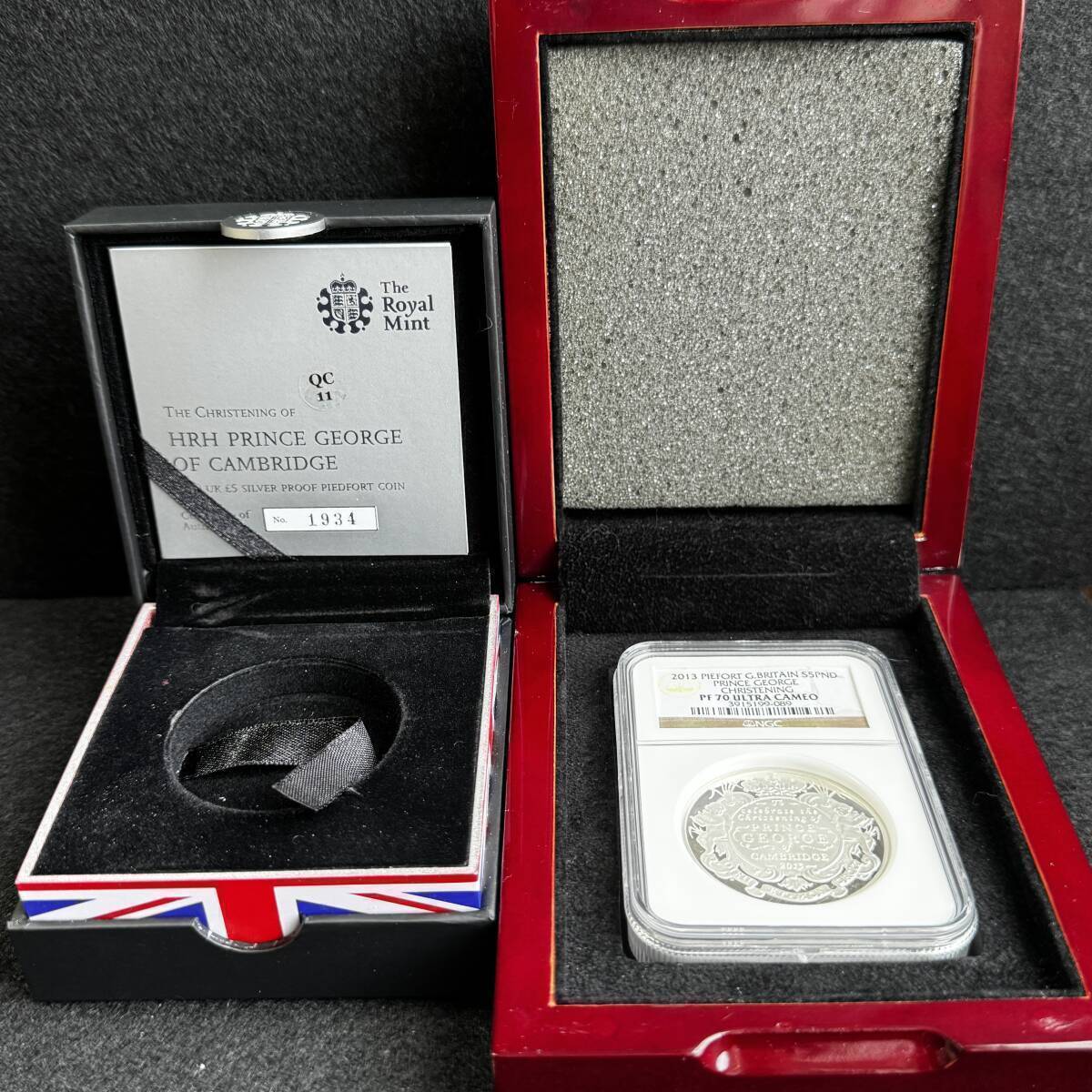 『最高鑑定』2013年 イギリス プリンスジョージ洗礼記念銀貨 ピエフォー 5ポンド 銀貨 NGC PF70 ULTRA CAMEO 木製ケース