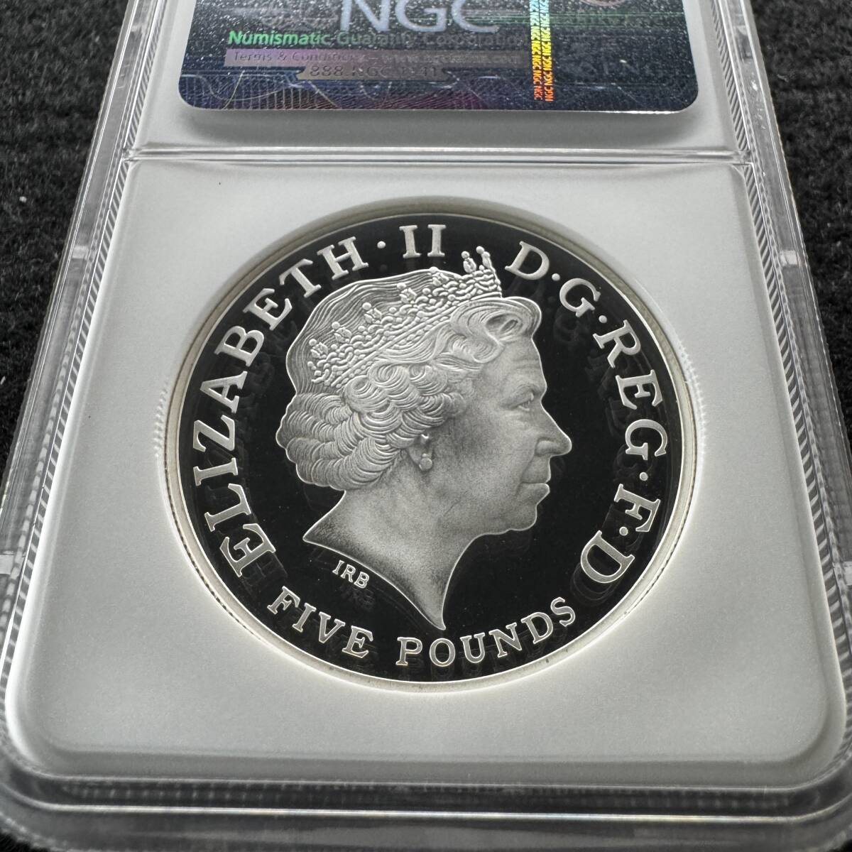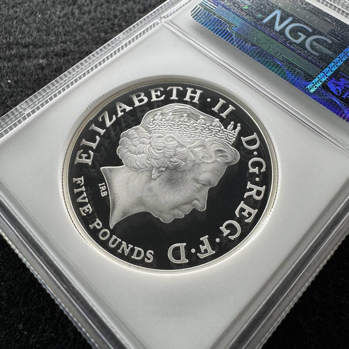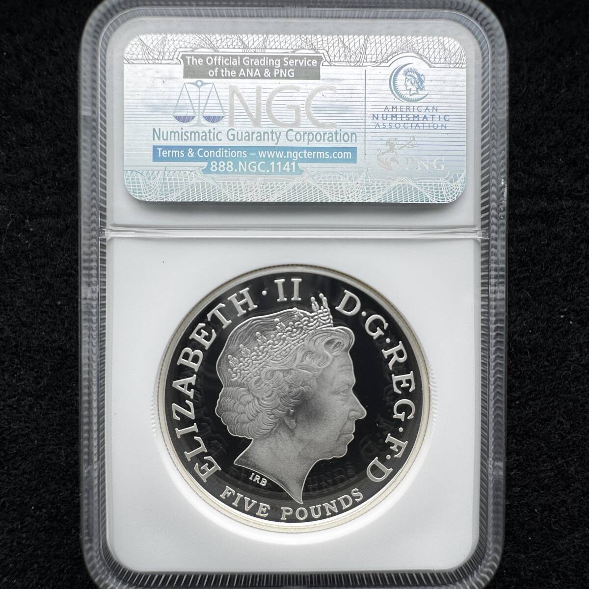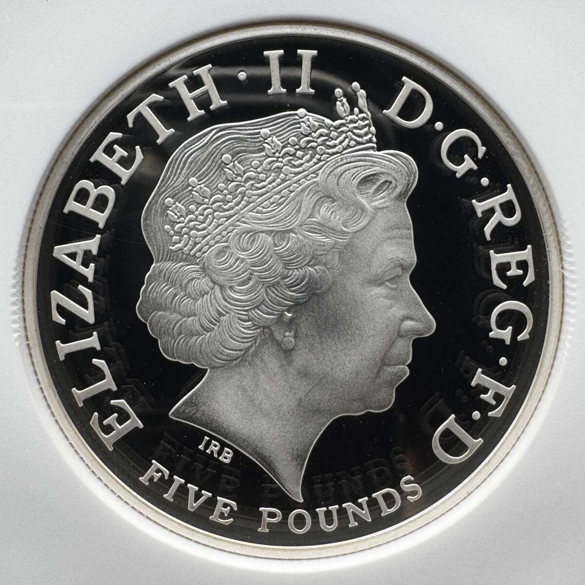 『歴史と優雅の融合! £5銀貨』2013年 イギリス プリンスジョージ洗礼記念銀貨 ピエフォー 5ポンド 銀貨 NGC PF70 ULTRA CAMEO 木製ケース