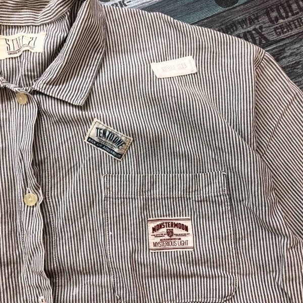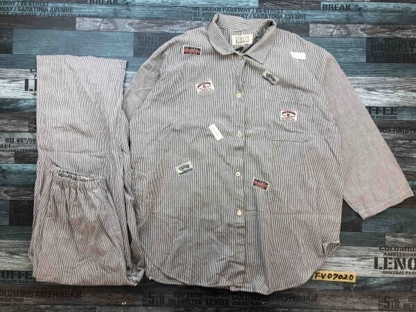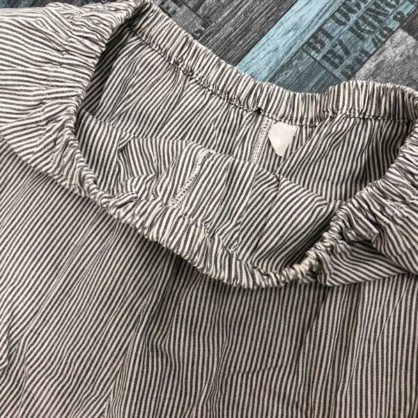 STAFF 21 レディース 胸ポケット ストライプ 前ボタン ルームウェア 上下セットアップ グレー白 です。