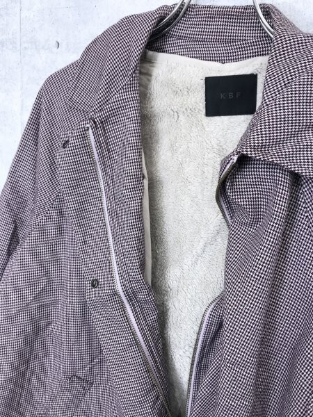 KBF ケービーエフ レディース ボアライナー付き 比翼ジップ やや薄手 グレンチェック コート ONE ピンク黒赤紫 です。