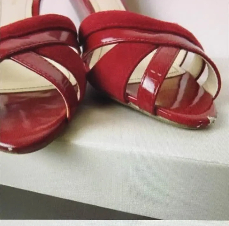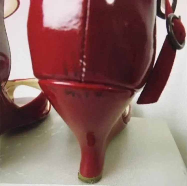 状態は右のかかとの黒ずみ。つま先のはがれです。箱汚れです。
