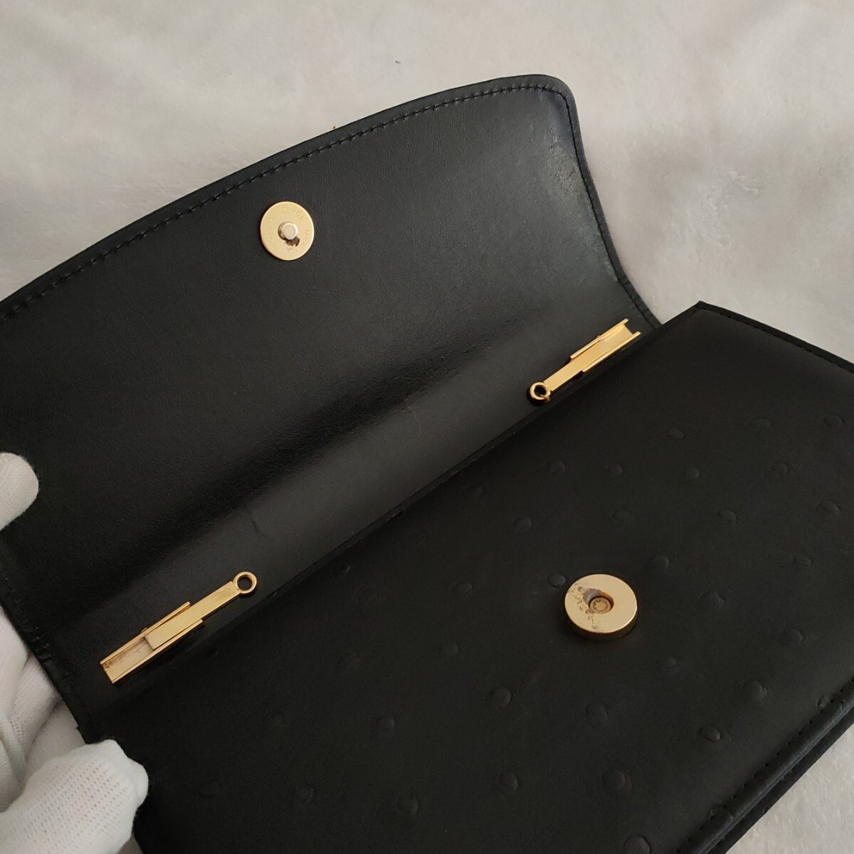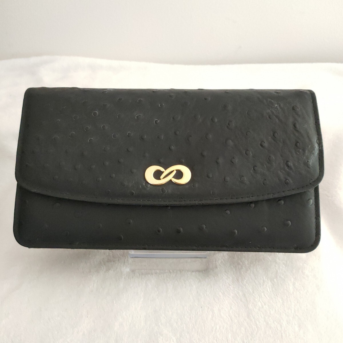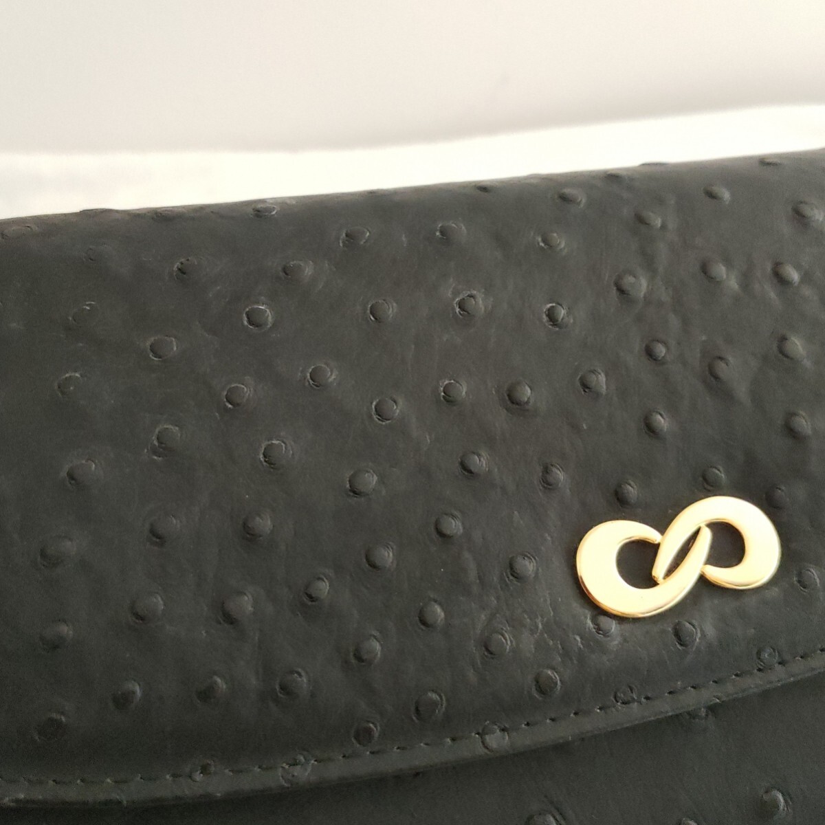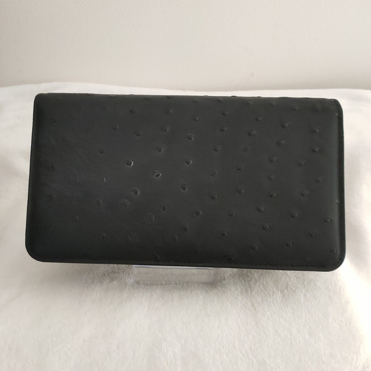 しっとりとした本革の質感に、オーストリッチ型押しが上品に映えるクラッチバッグです。