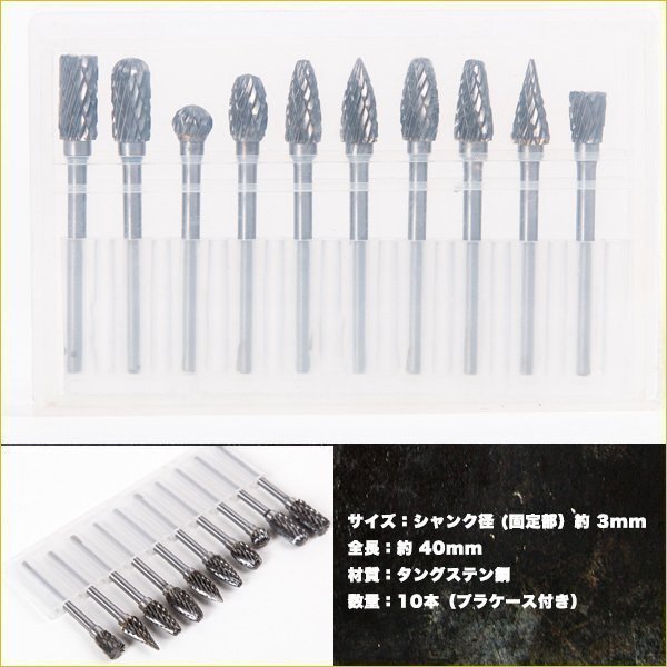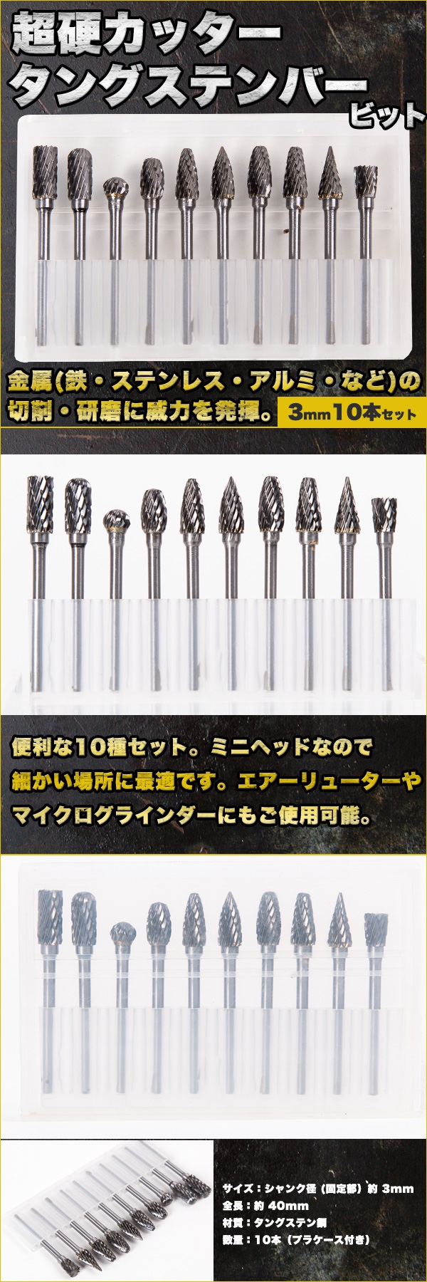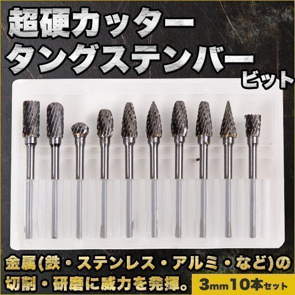 ★新品 超硬 カッター タングステンバー ビット 3mm 10本 電動工具 電動 アタッチメント 研磨 消耗品 交換 予備 リューター