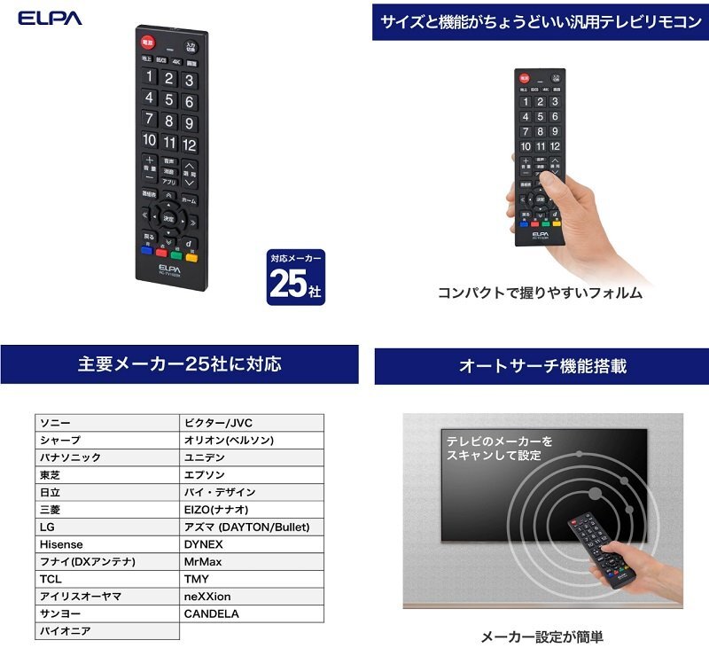 | エルパ(ELPA) テレビリモコン RC-TV102BK |