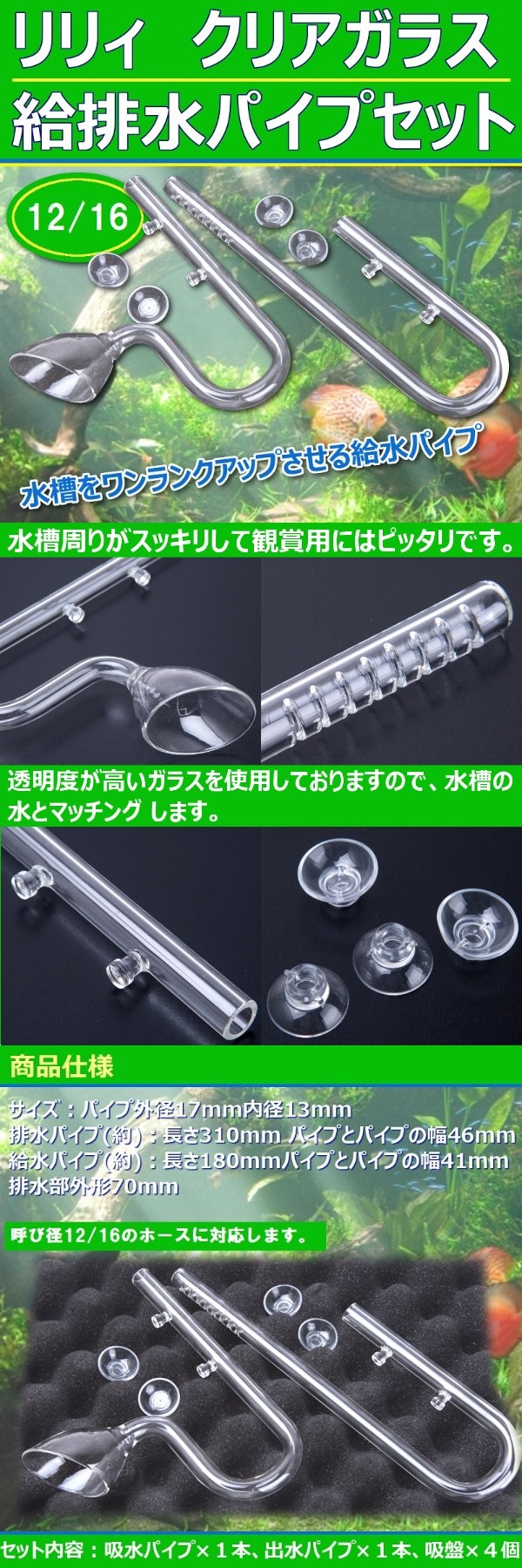 リリィ クリア ガラス 給水 排水 ポピー 12/16 パイプ セット ガラスパイプ 水槽 水草 熱帯魚 給排水