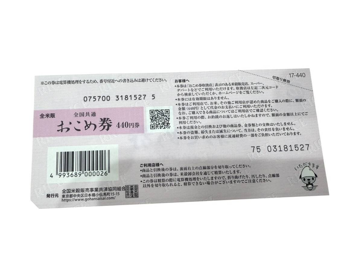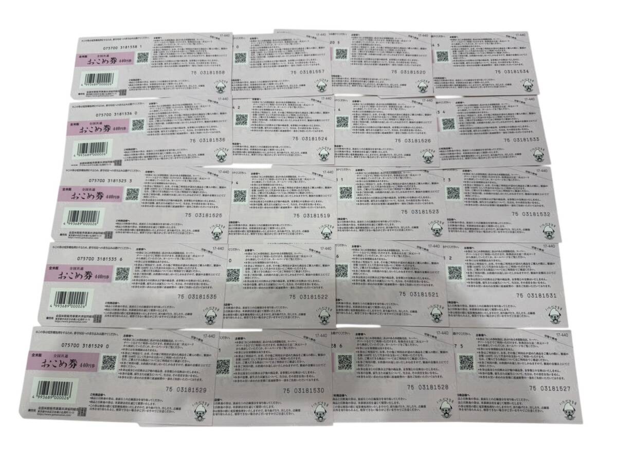 | ●F7-11-30 全国共通 おこめ券 20枚(440円×20枚)8800円分 有効期限無し | |||