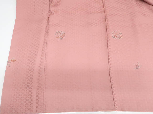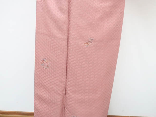 リサイクル商品のため、袖口薄汚れがございますがご着用いただけると存じます。 地色は くすみピンクです。 1枚目の画像が近いお色かと思われます。 素材は正絹です。 |