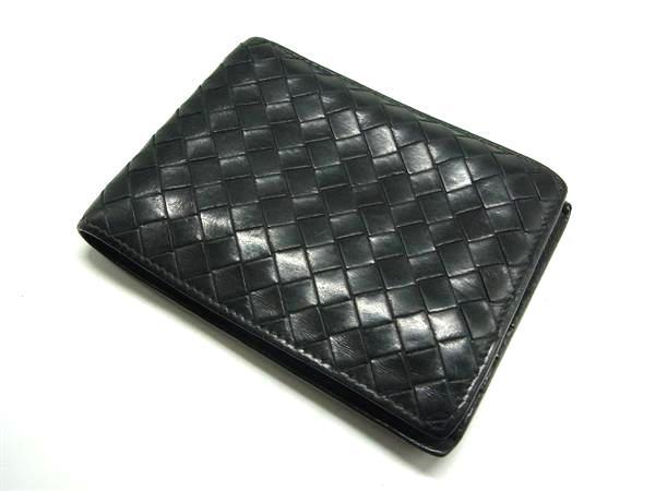 BOTTEGA VENETA ボッテガヴェネタ イントレチャート レザー 二つ折り 財布 ウォレット 札入れ 小銭入れ カード入れ ブラック系 DJ4094
