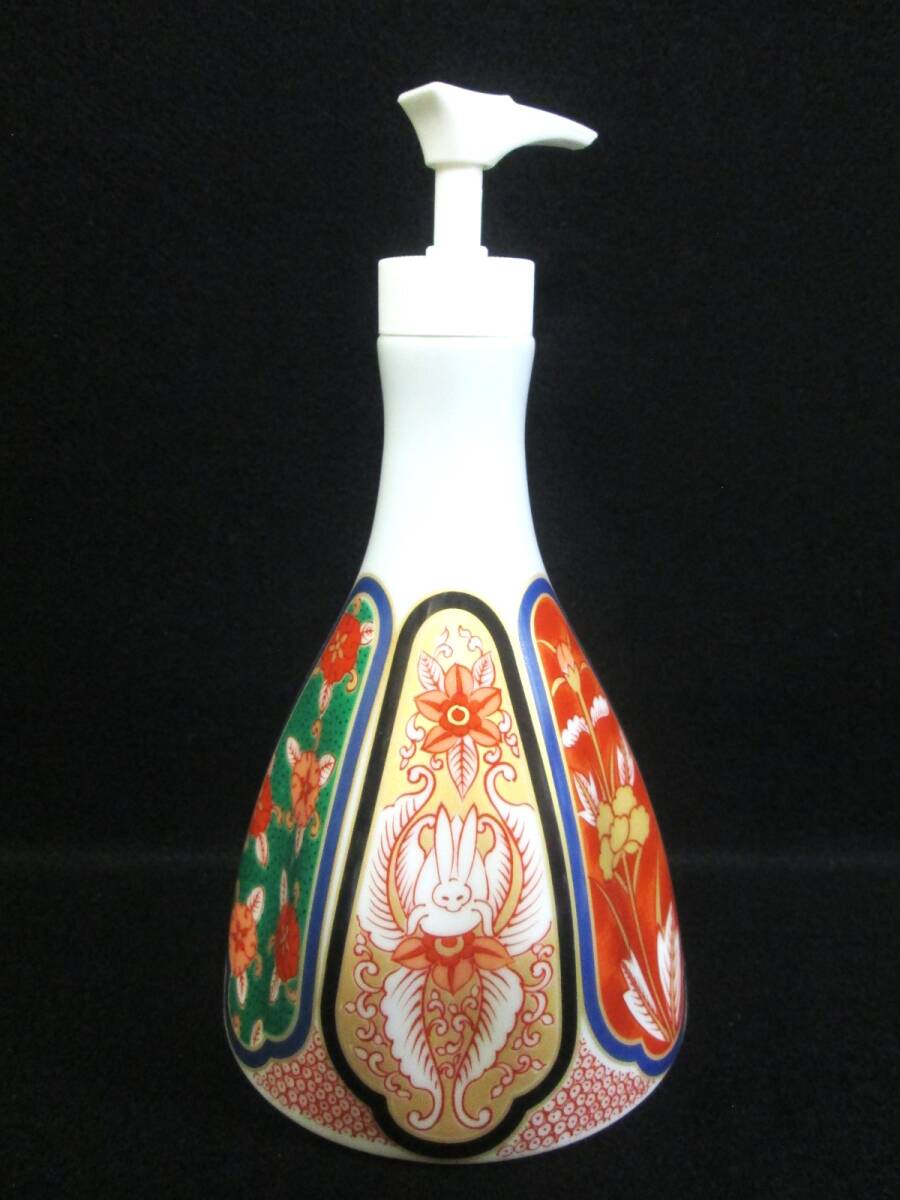 有田焼 雅峰窯 ソープディスペンサー 色絵 金彩 兎 陶磁器 ディスペンサー ソープボトル ソープ入れ