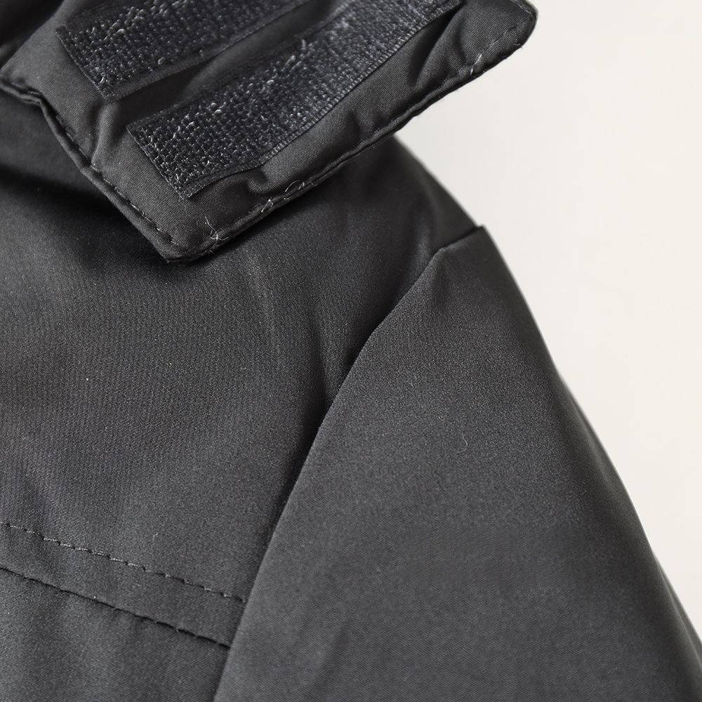 内側スタンドカラー&マジックテープ調整で防風性アップ。動きやすく快適な着心地。
