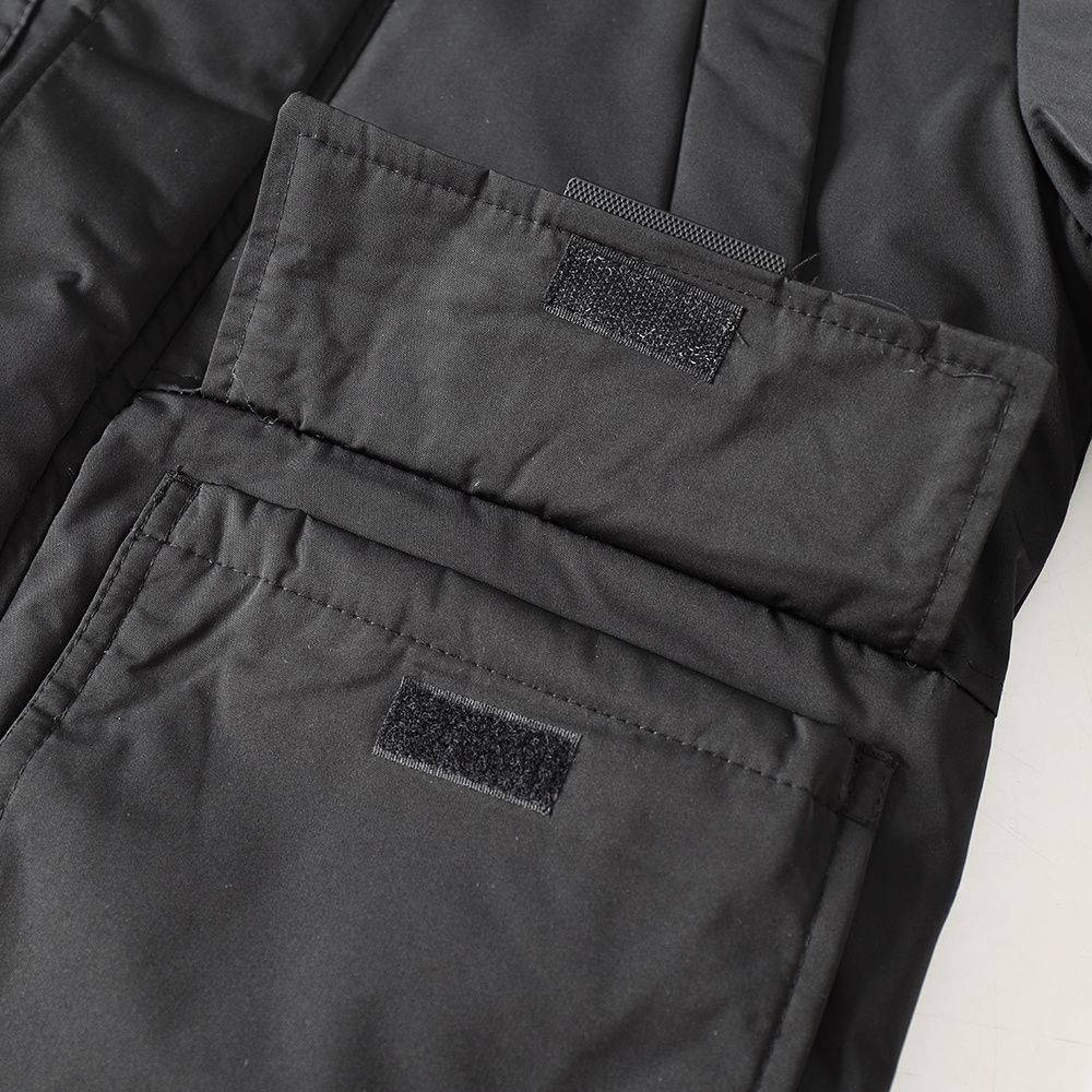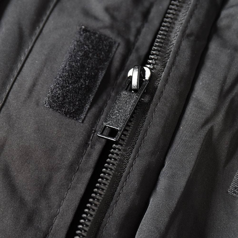 胸部ジップポケット、裾フラップポケット、サイドスラッシュポケット、内ポケットを装備。