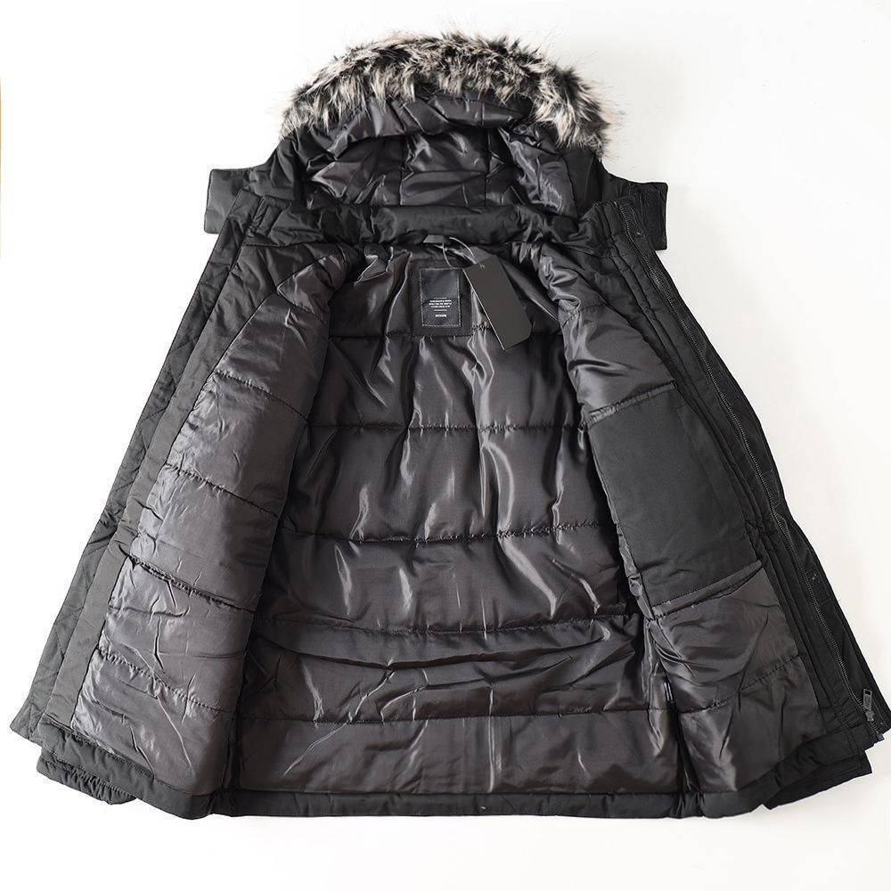 1497-3XL黒 欧米サイズ 中綿ジャケット メンズ ファー付きフード ブルゾン 新品 防風 保温 暖かい 厚手 カジュアル アウター モッズコート