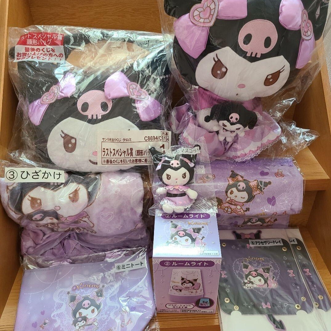 【サンリオ】クロミ くじ 9点 ラスワン 顔形バッグ BIGぬいぐるみ ひざかけ ルームライト マスコット アクセサリートレイ R711