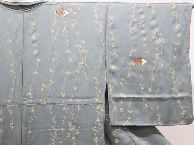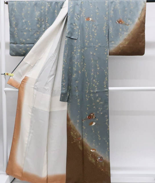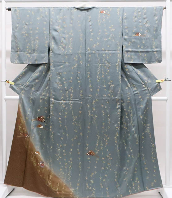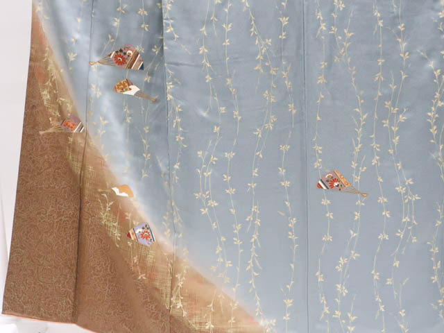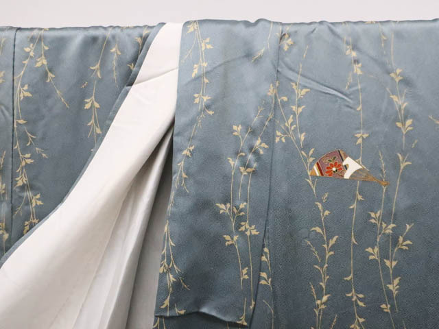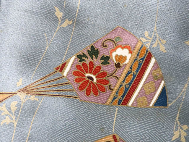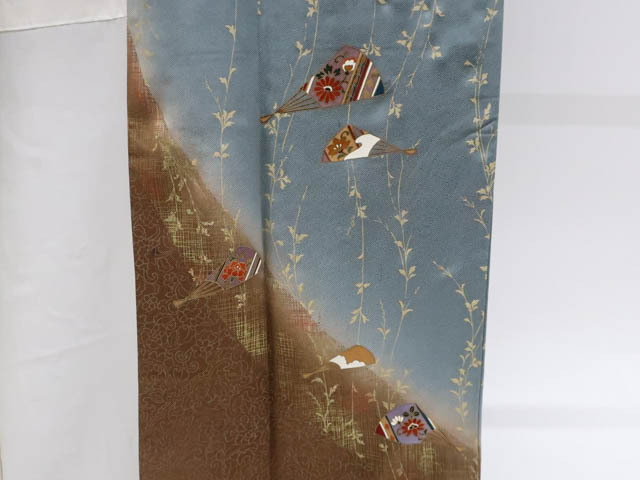 《京都一輝堂》付下げ 金彩 扇子 正絹 身丈約162.5cm 裄丈65cm r7z11-664