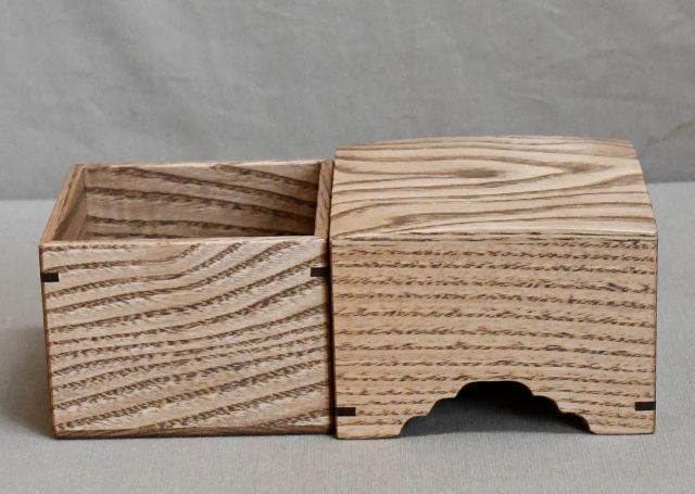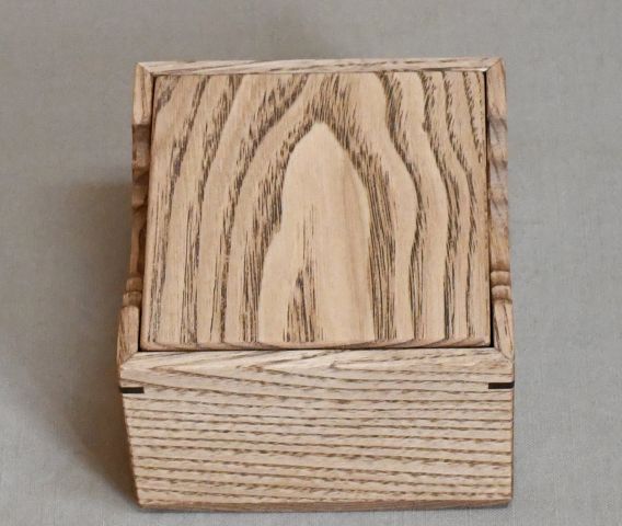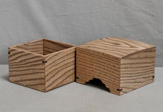 | 商品説明 | 栗材の駒箱です。 天板は四隅4mm前後落としゆるく全体に丸みを付けています。 側板の厚みは約6mm。上板は8mm前後。底板は5~6mmです。 上板・底板は枠にカギコミして枠に落とし込んでにして組んでいます。 植物性グロスクリヤーオイル仕上げ。 サイズ W108 D108 H76 蓋の下り速度は3秒程度です *オイル仕上げですので漆仕上げ同様に木の感触が良いです。 | |