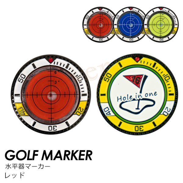 3色水平器付マーカー レッド ゴルフ マーカー 水平器 非磁性 パッティング ガイド 高精度 水準器 多機能 ゴルフマーカー パター練習
