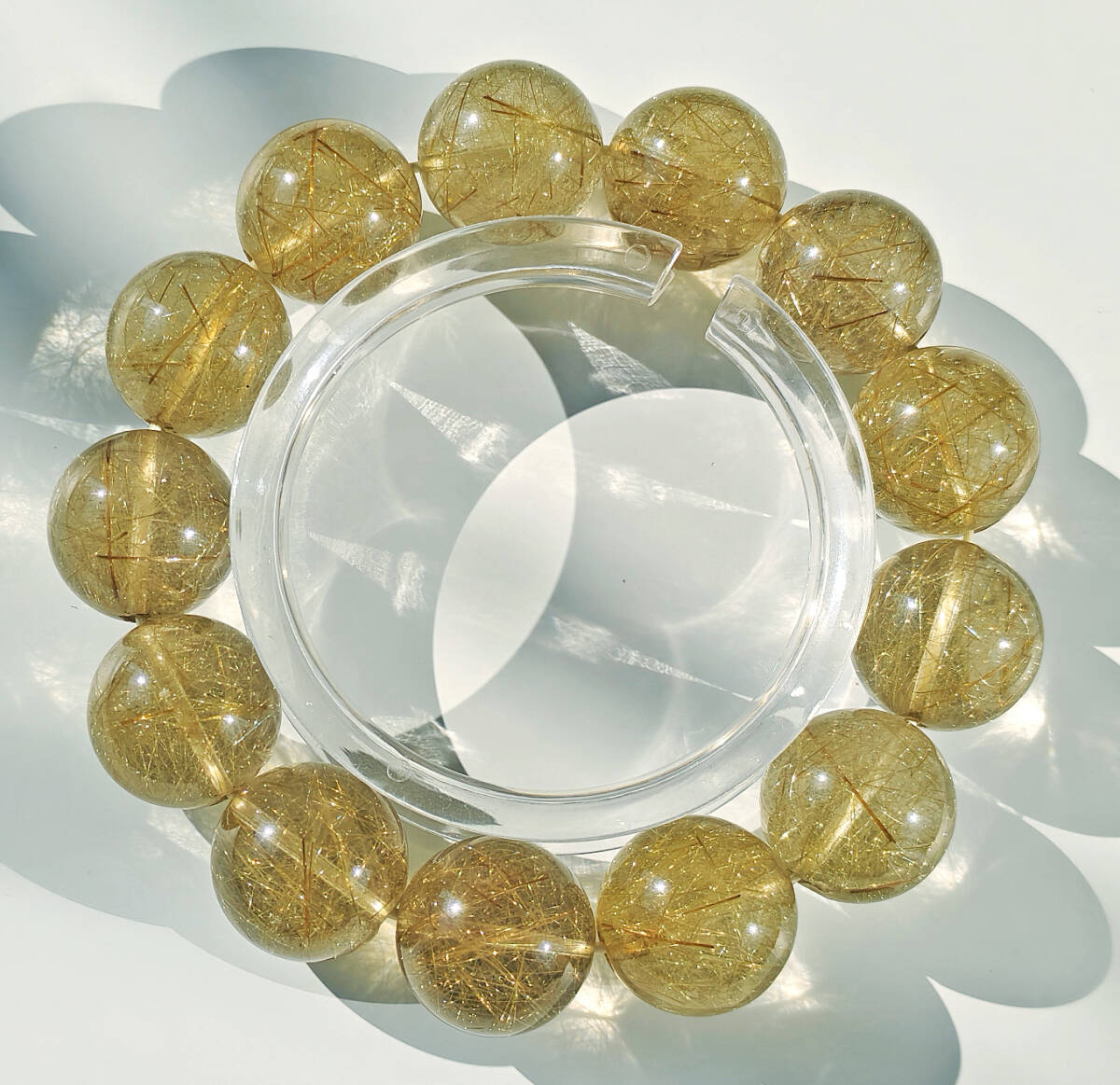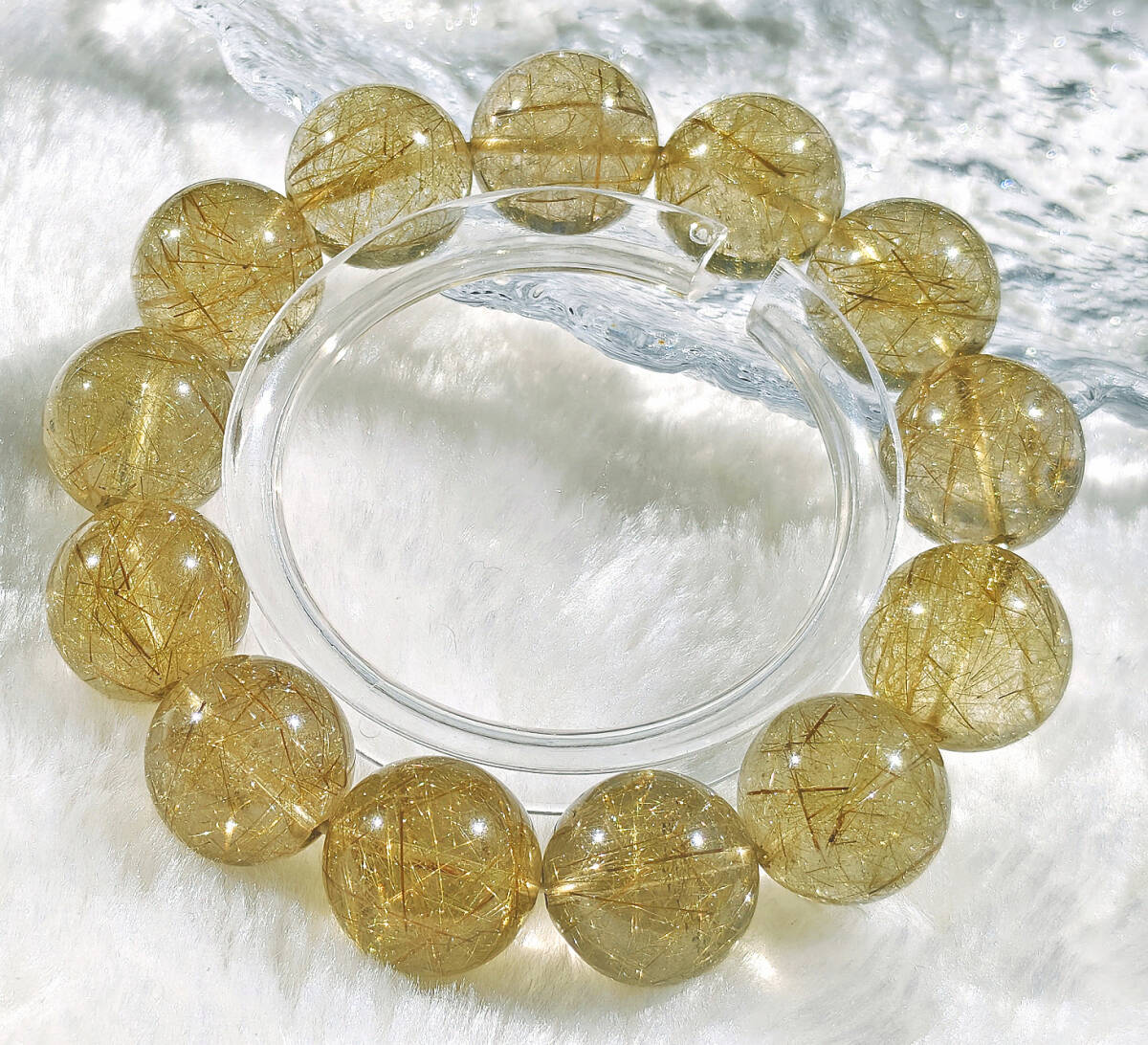 ○商品状態:新品・天然本物保証・色加工無 ※実物撮影 ○使用宝石:ヴィーナスゴールドルチル ○石重量: 約90.6g ○石サイズ:約17mm ○内周: 約18cm ○簡単説明:金色の線入り・・「金銭入り」と置き換え、金運・財産運・事業運などを高めるとの考えからです。 赤の線入り・・美と愛の女神ヴィーナスの髪,愛情のエネルギーを増幅させ、恋愛運をアップ,不思議な天然石です。 ★★★ご注意:出品物はすべて携帯電話で自然光下で実物撮影したもので、実物色に最大限近づけていますが、ご使用のディスプレイ等の違いにより少し色差がある場合がありますのでご了承ください ★★★天然石のために、傷、凹み、ヒビ(内部の割れ)、サイズの不揃いがある場合があります。 |