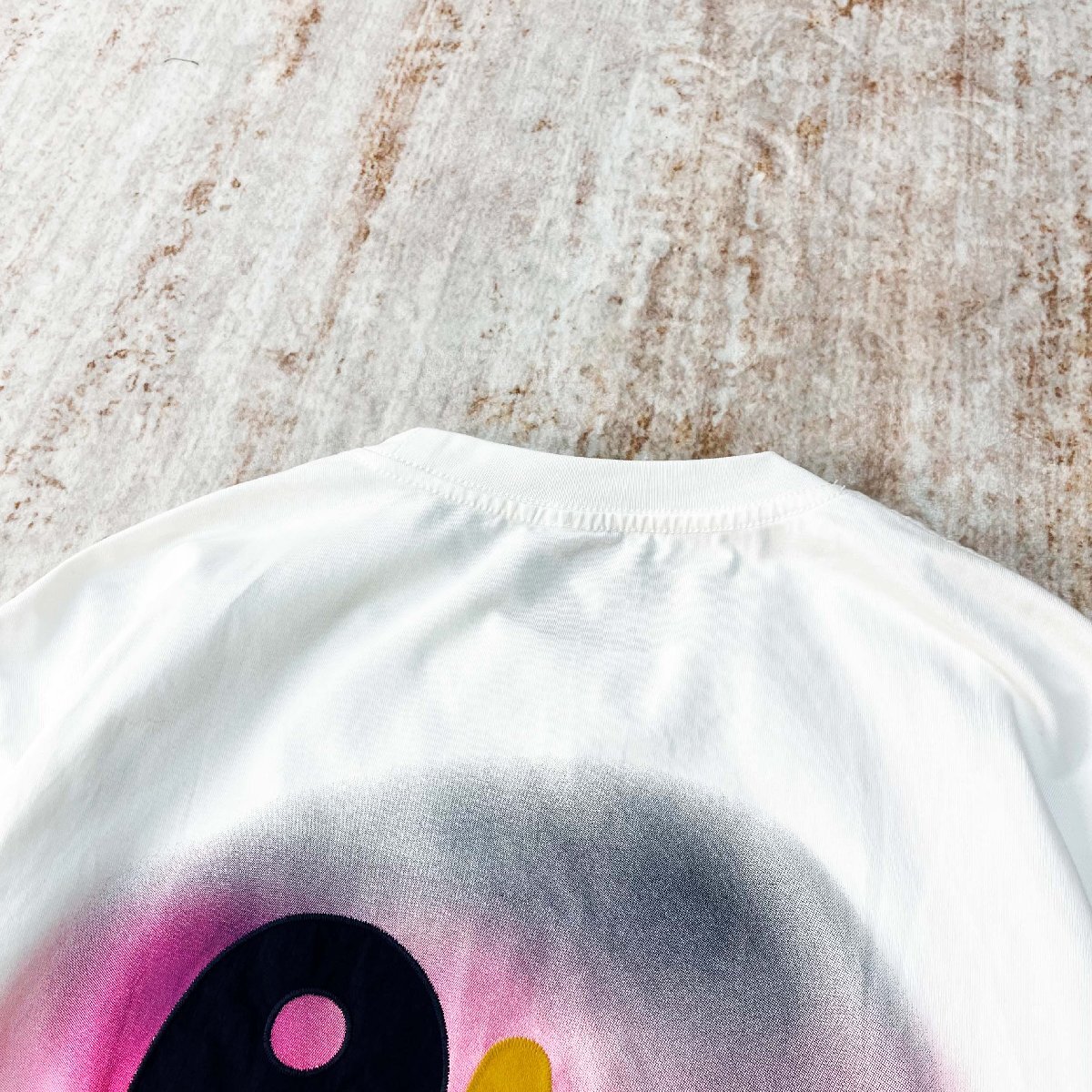 首元はベーシックにクルーネック仕様に程よい伸縮性と肌に優しい質感に仕上げました。背面にはカラフルな英字柄のプリントをセンス良くあしらい、絶大な存在感が溢れる!周りの目を引いていつもと違う印象を狙う。色や柄等細部へのこだわりも見逃せないポイント!これを機に自分に合う一着を見つけ、ワンランク上の着こなしを。