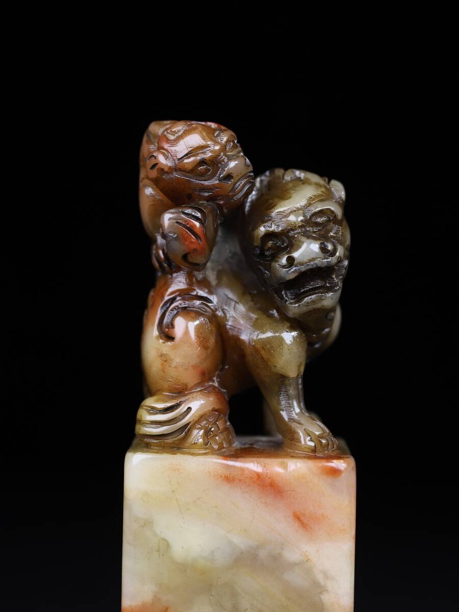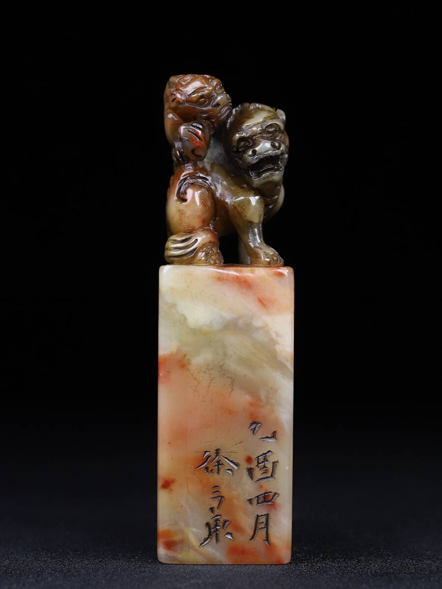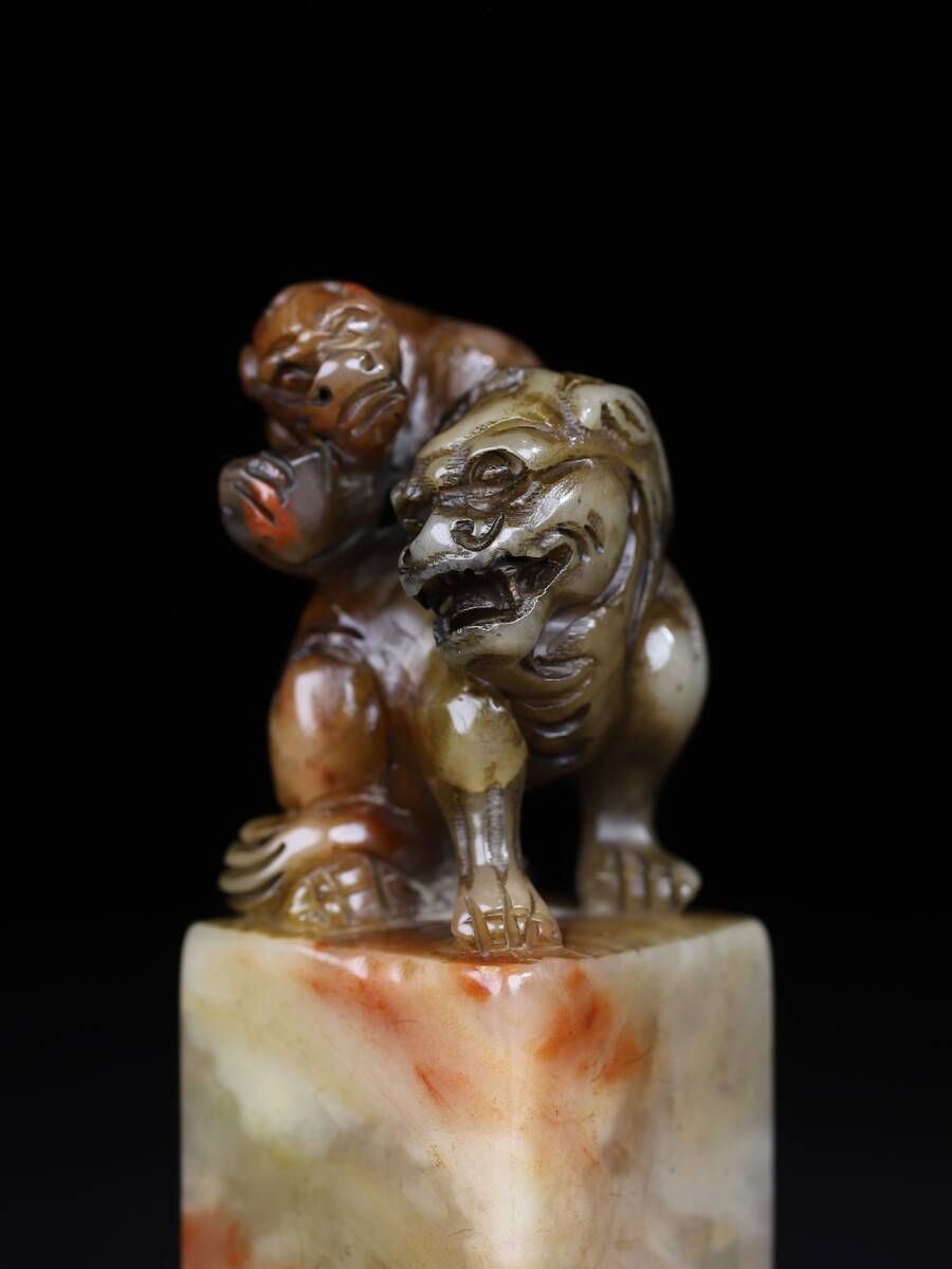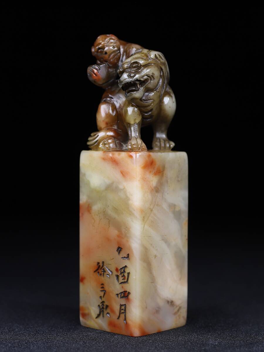 【超珍館蔵】寿山石 細密彫 雙獣呈祥印章 印章 印鑒 文房具 書道品 古賞物 古董品 古美術品 時代物 旧家蔵出 稀少珍蔵品
