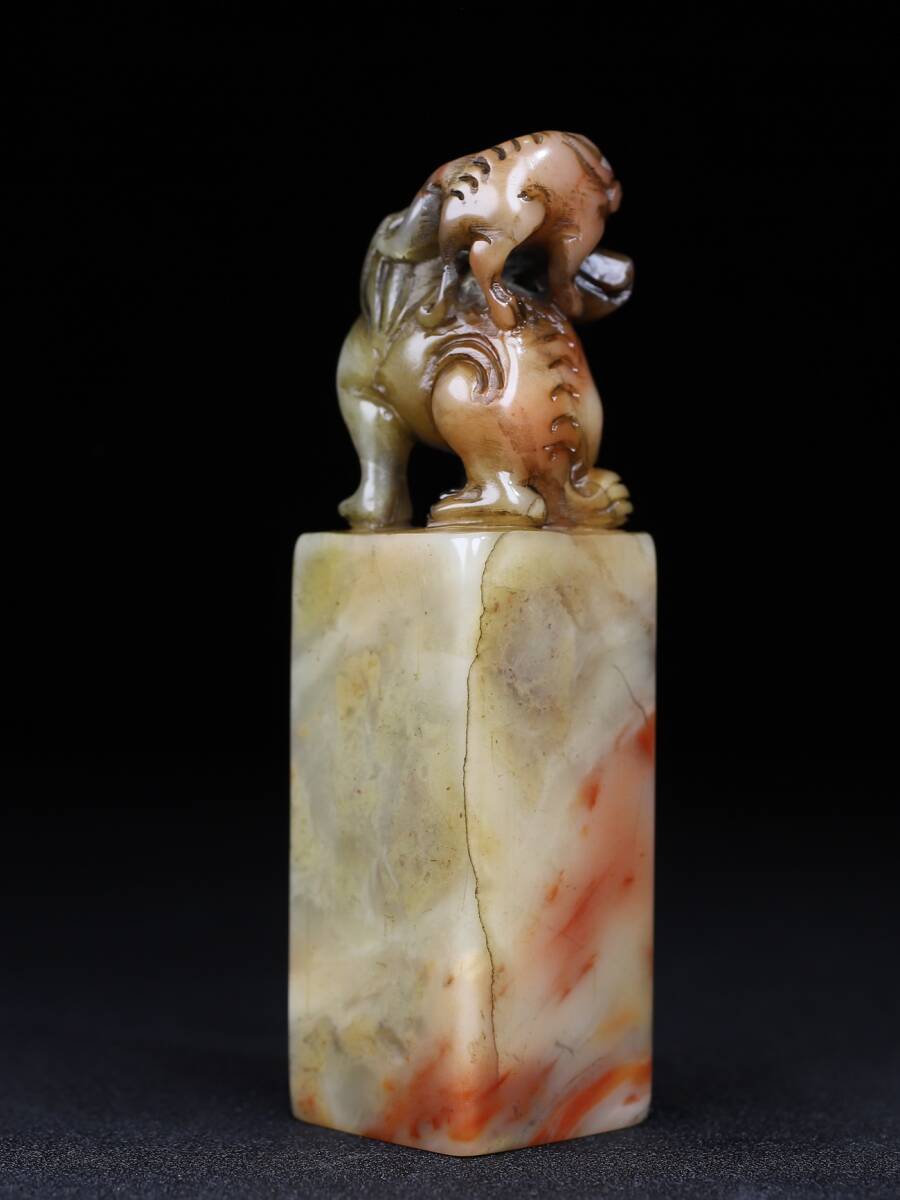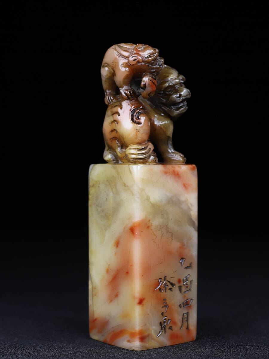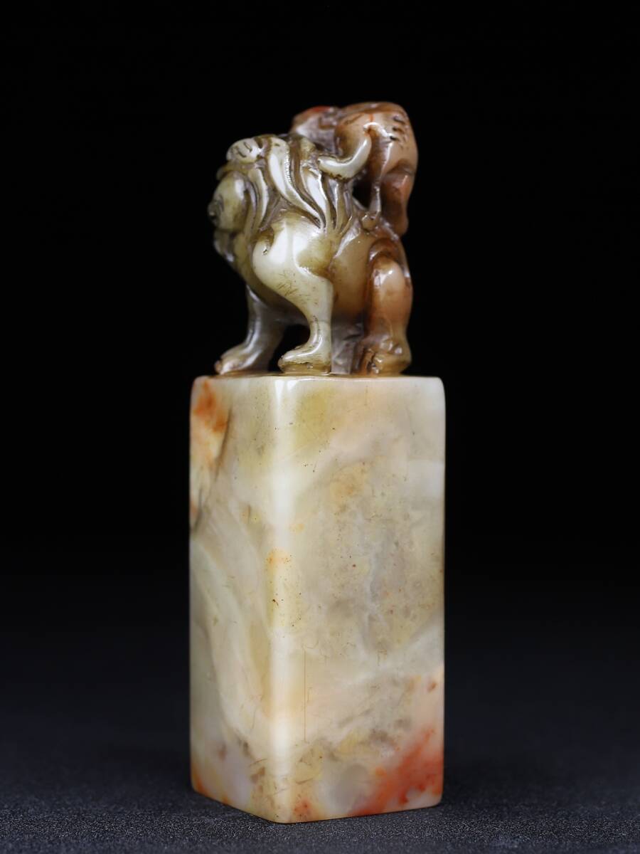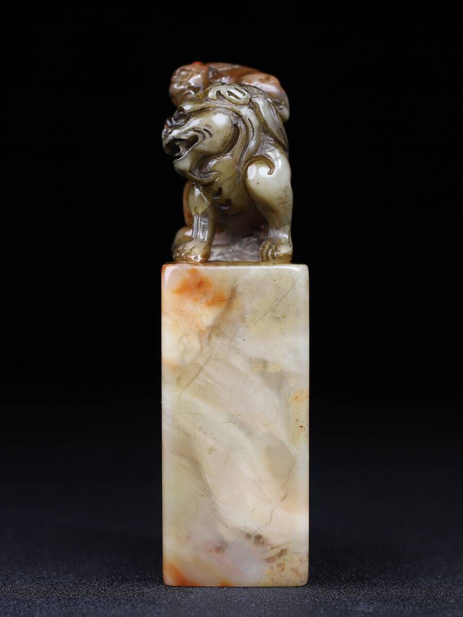 【超珍館蔵】寿山石 細密彫 雙獣呈祥印章 印章 印鑒 文房具 書道品 古賞物 古董品 古美術品 時代物 旧家蔵出 稀少珍蔵品