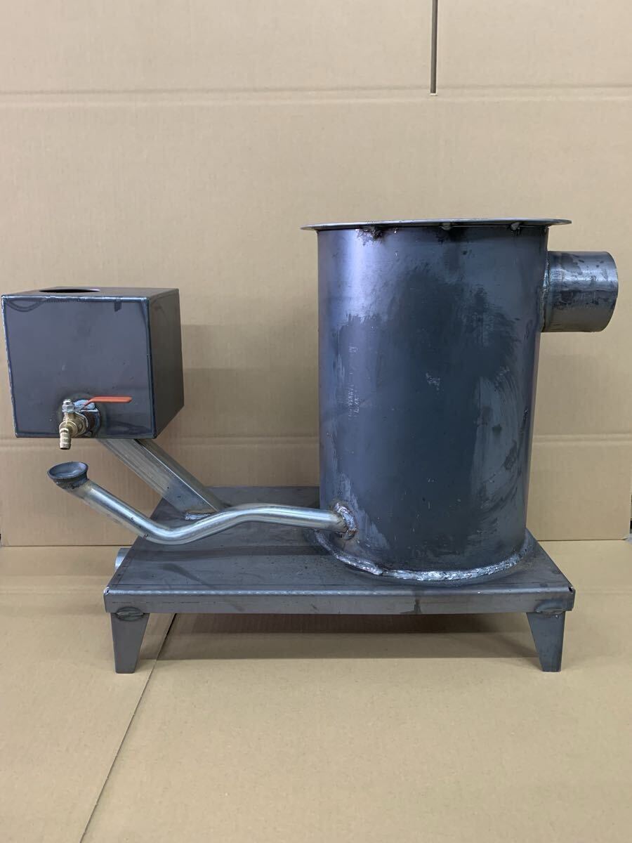 こちらは素人試作の廃油ストーブです。燃焼路の板厚約3mmです。