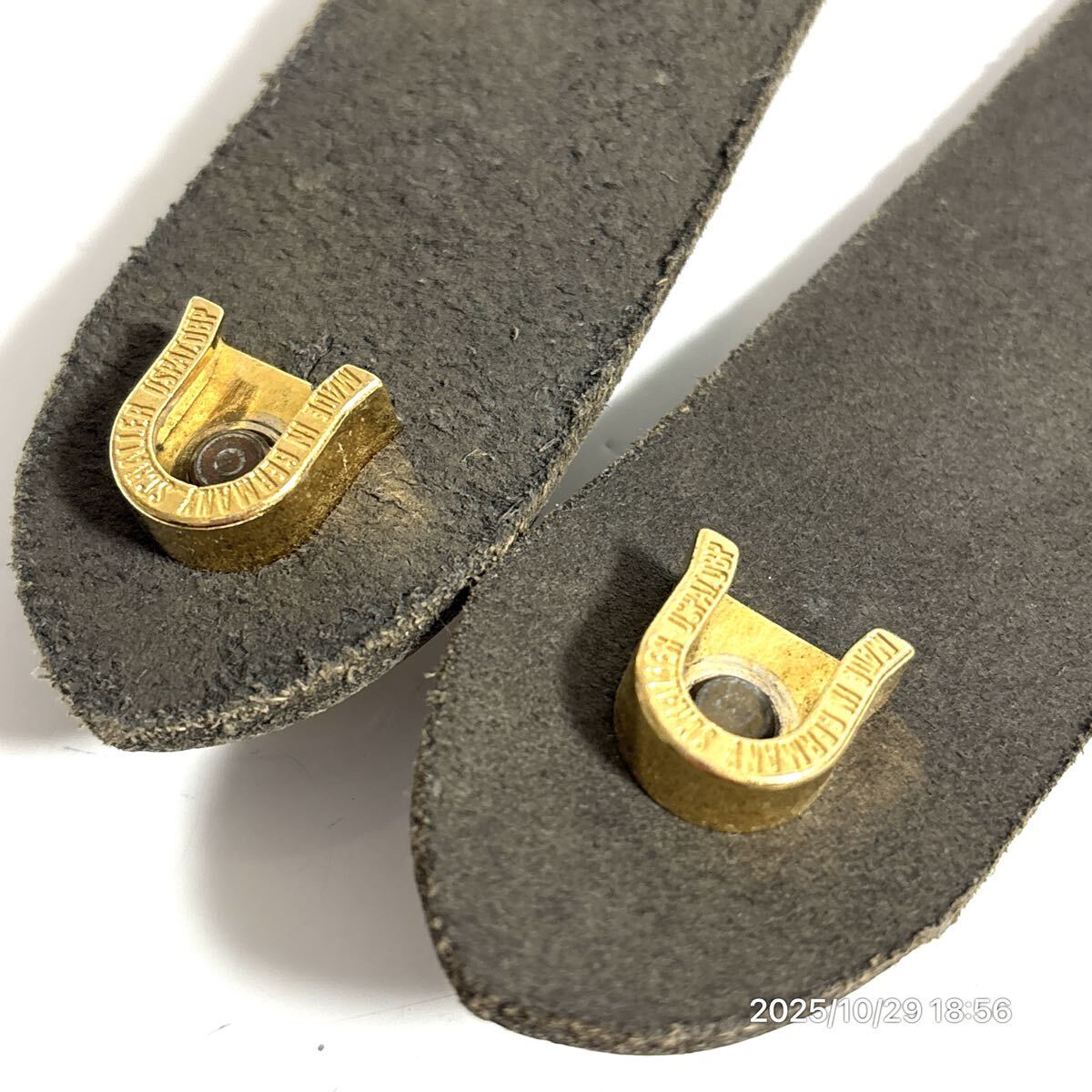 商品説明:レザー部分、全体的に薄いスレ傷跡、金具部分に小傷などございますが目立つダメージなどなく比較的綺麗な状態のお品物です