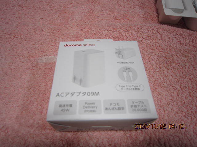 docomo ドコモ純正 新品同様品 ACアダプタ09M Type-C to Type-C 1,2m ケーブルとACアダプタのセット