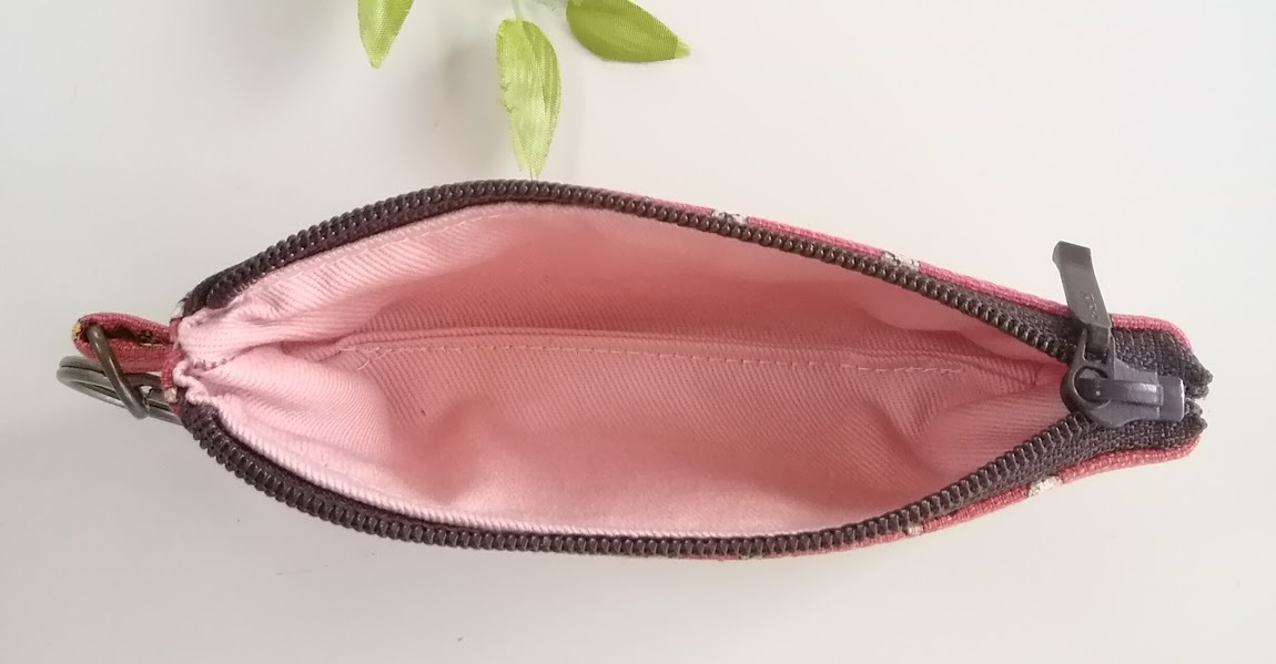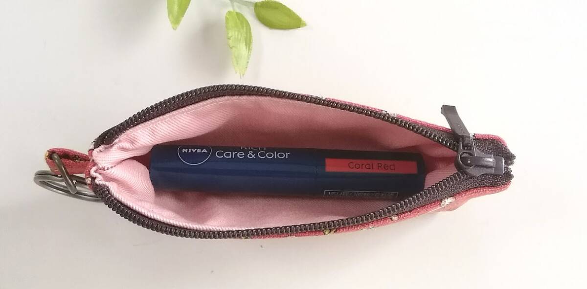 ハンドメイド☆キーリング付きの横長ミニポーチ(マチ付き)です。