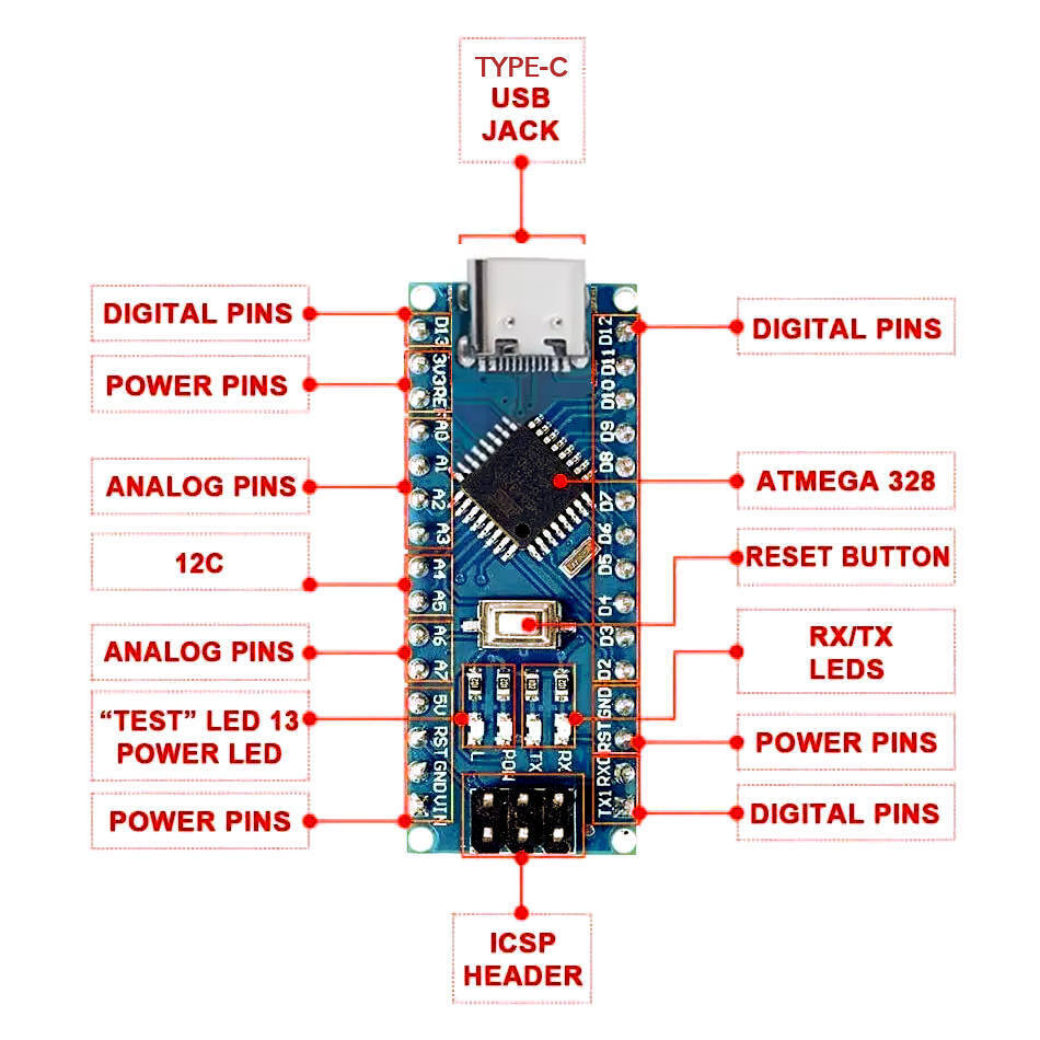 Arduino Nano V3.0 互換品 ATmega328P (USB Type-C コネクタ)【電子工作】
