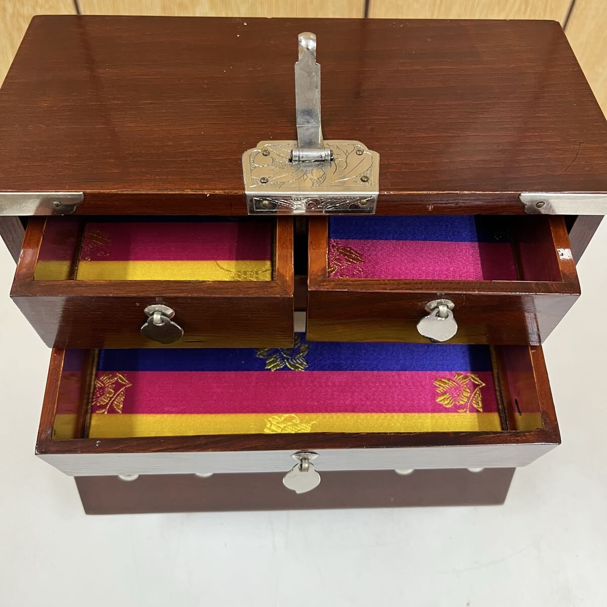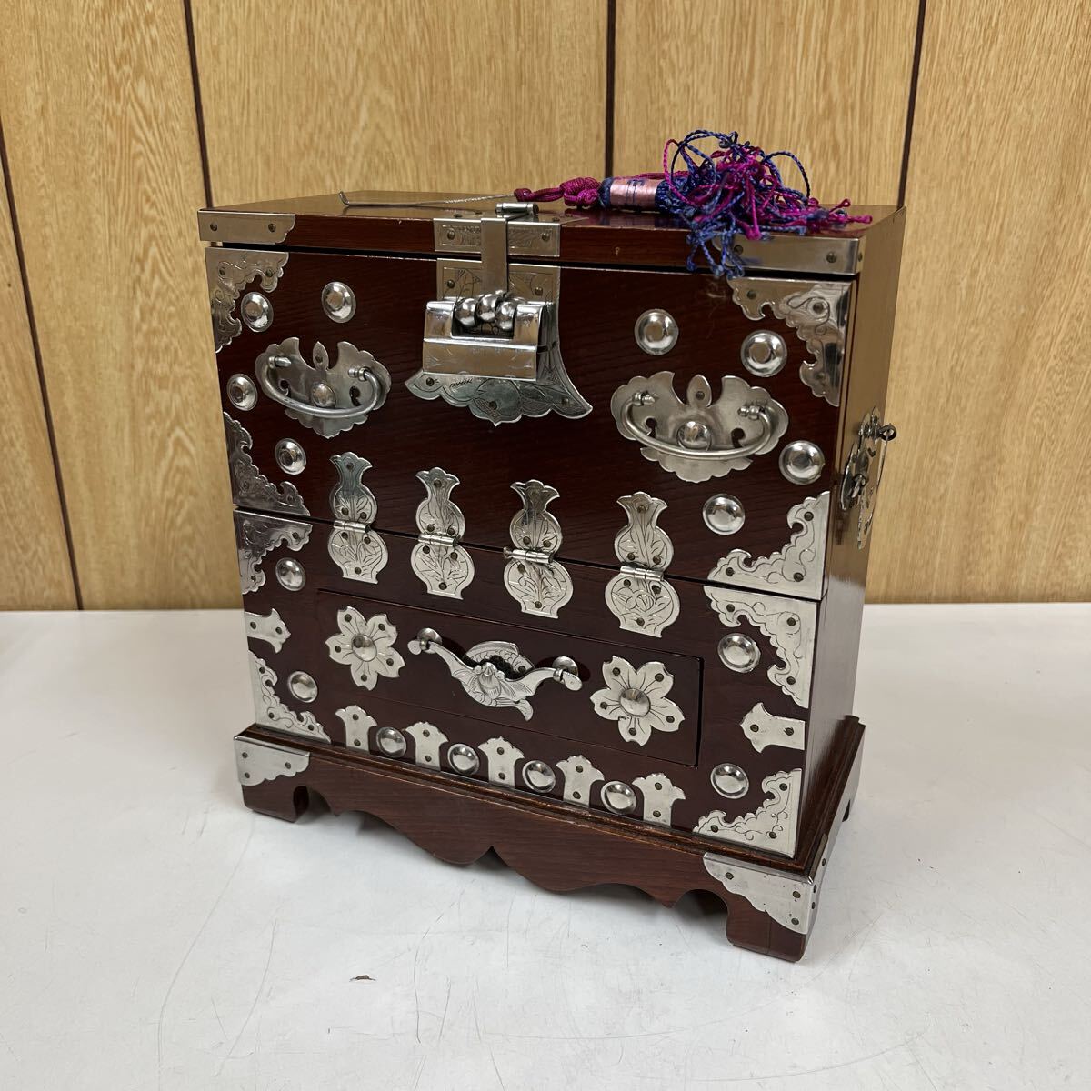 R ☆美品補佐 中国 アンティーク 小物入れ 宝石箱 ジュエリーボックス 小箪笥 木製 レトロ 昭和レトロ 収納棚 卓上棚 簡易清掃済み