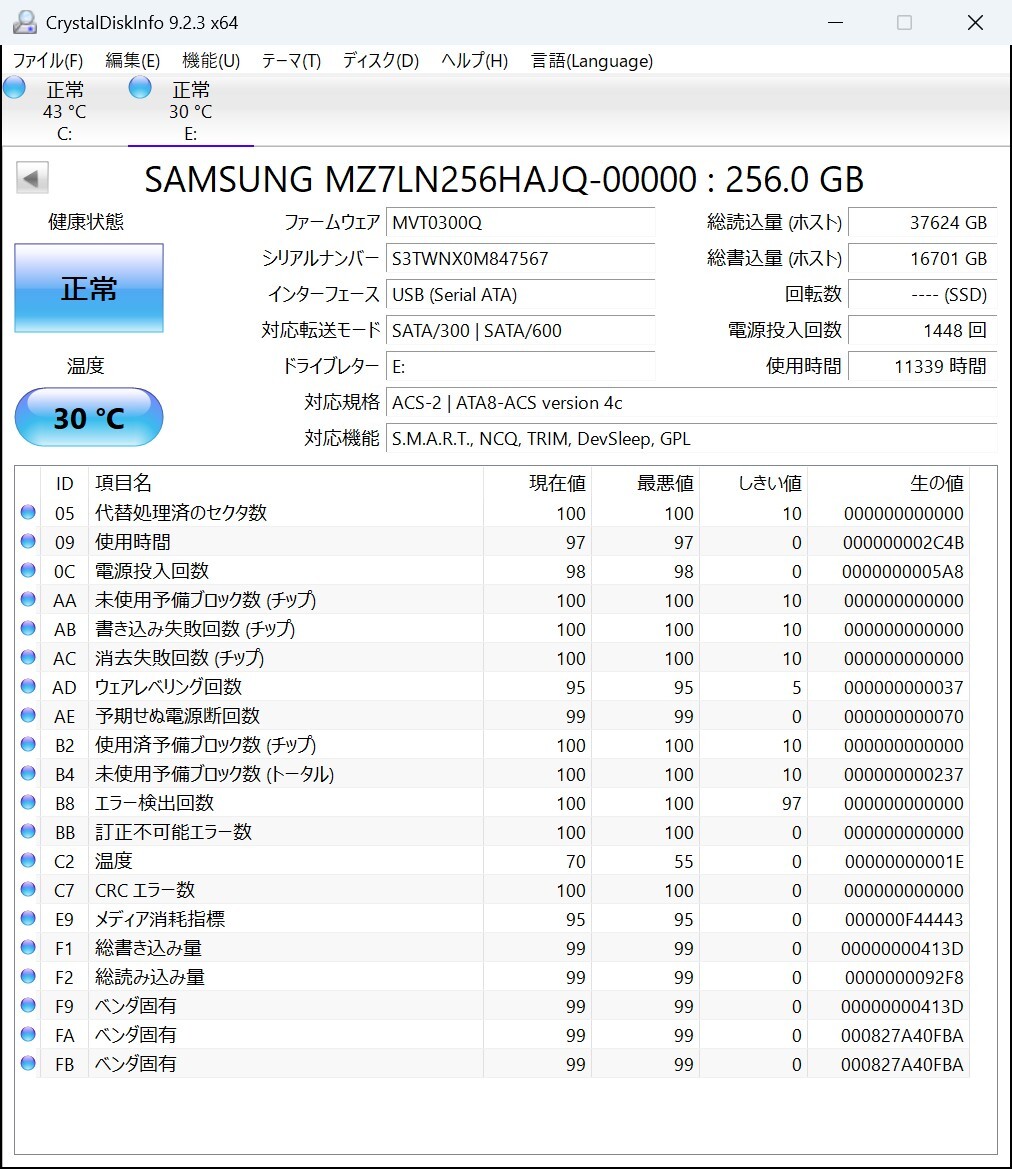 | ★☆1円 ~スタート☆SAMSUNG PM871b SATA SSD 256GB 2.5インチ 中古 使用時間:11339H☆★ | |