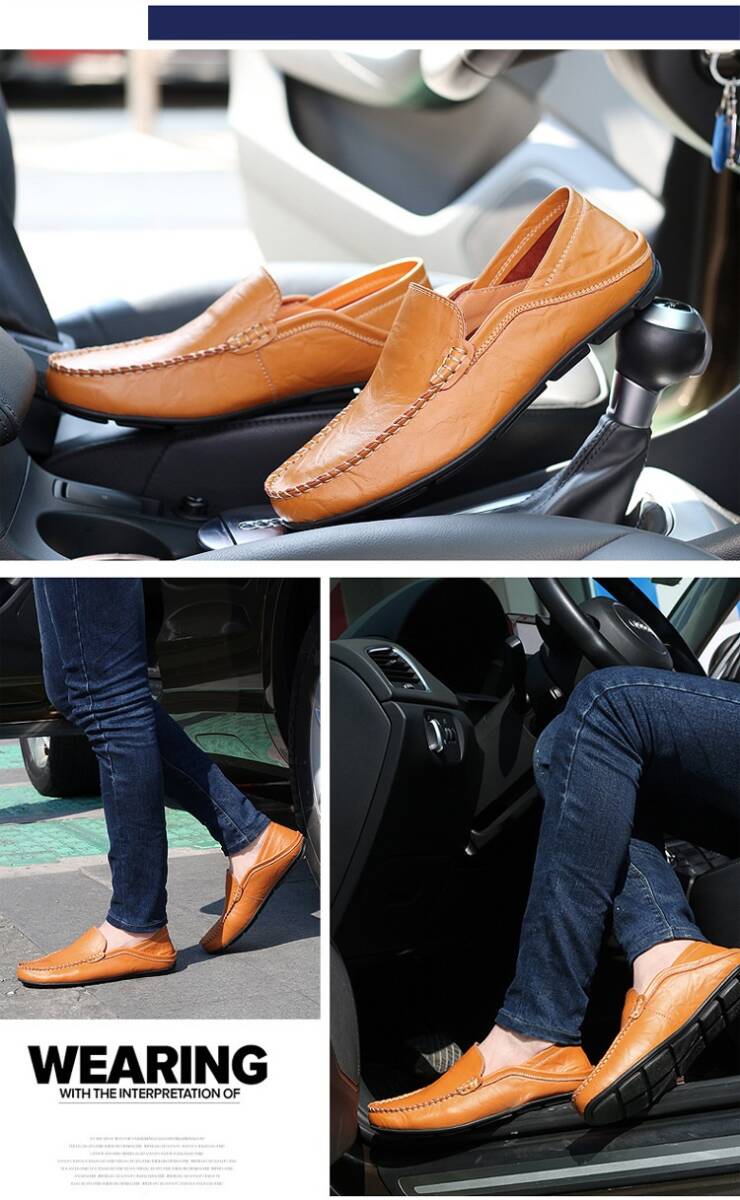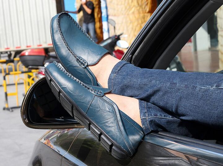 新品 上質 本革 モカシンシューズ メンズシューズ レザーシューズ ローファー スリッポン ドライビングシューズ*ネイビー 24.5cm~28.5cm