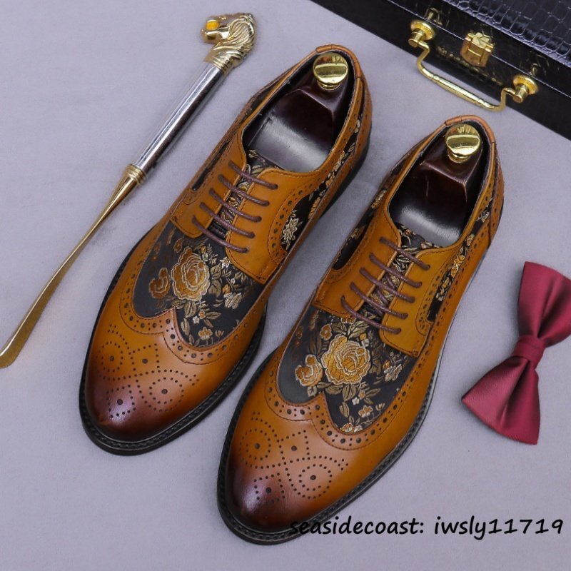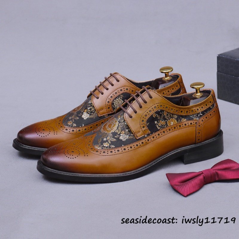 定価11万■最高級 ビジネスシューズ メンズ 刺繍 本革 レザーシューズ 職人手作り 紳士靴 革靴 牛革 男女兼用 フォーマル ブラウン 24.5cm