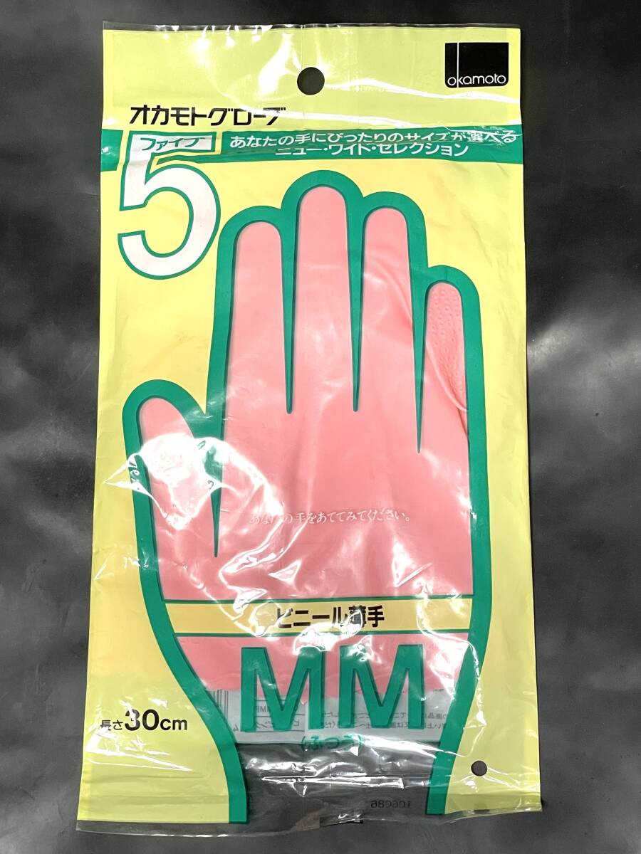 オカモト ビニール手袋 ファイブ 薄手・うら毛なし サイズMM ピンク 昭和レトロ 廃盤品 入手困難