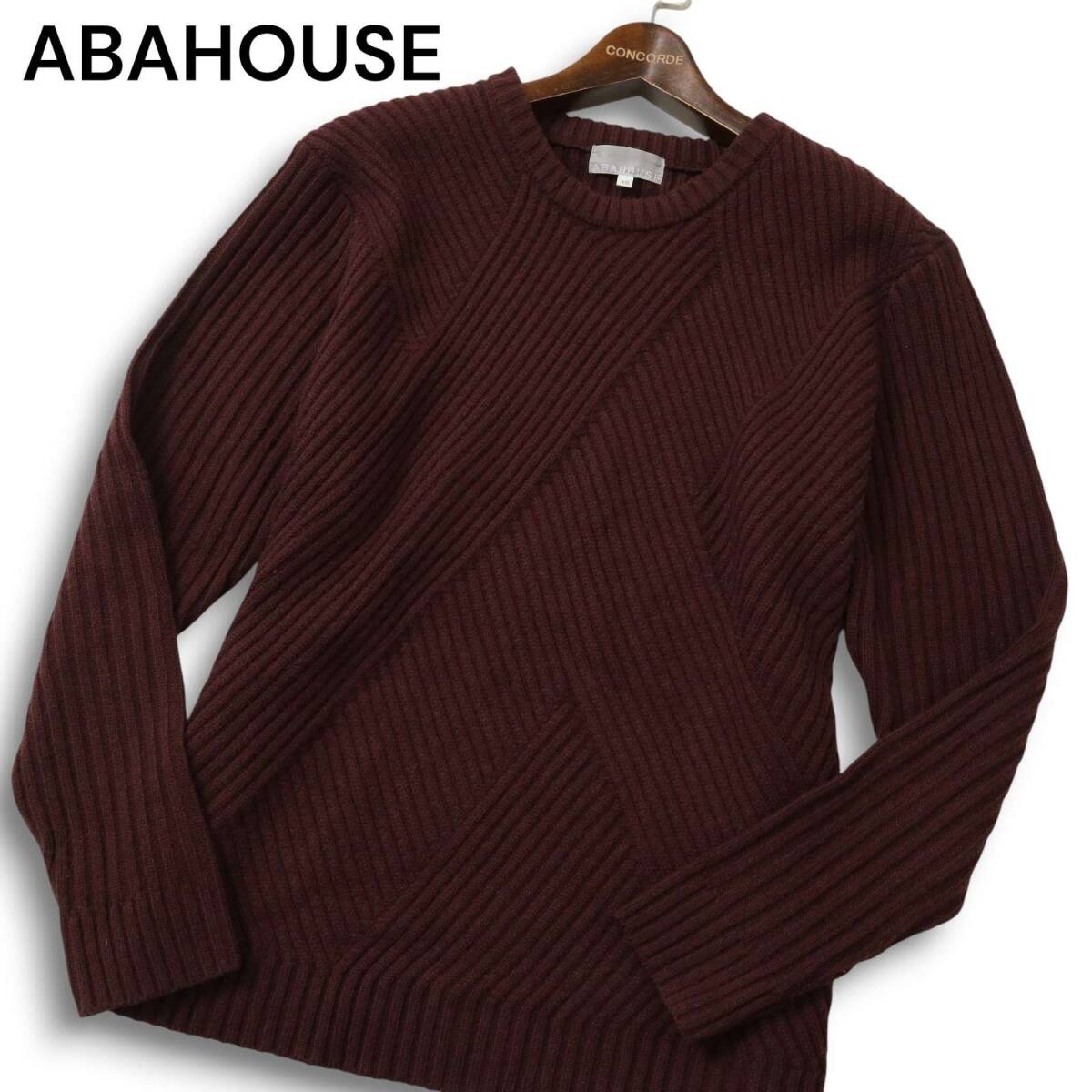 ABAHOUSE アバハウス 秋冬 ウール混★ 編地切替 ニット セーター Sz.48 メンズ