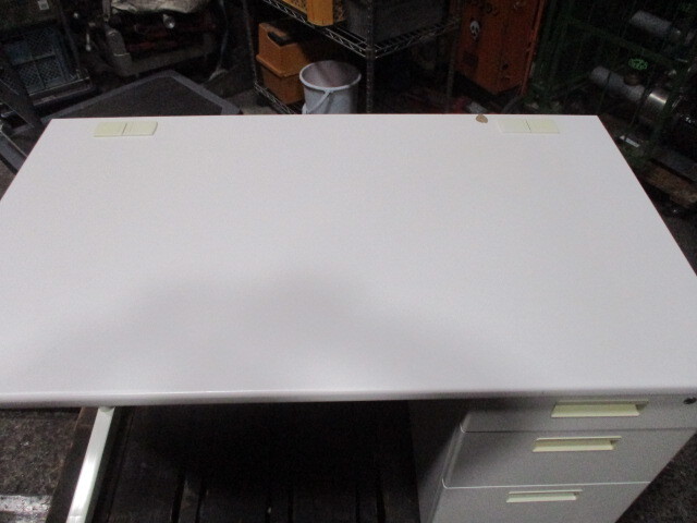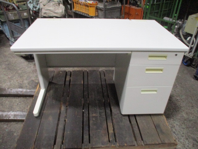 ④井上金属 片袖デスク ホワイト 1200x700x700 カギ付き