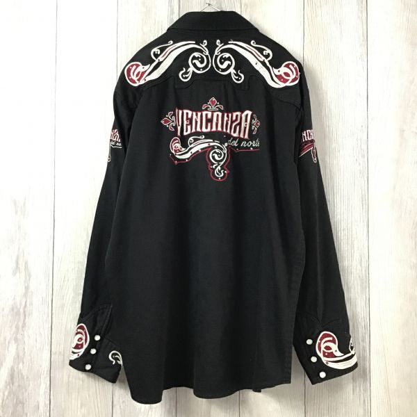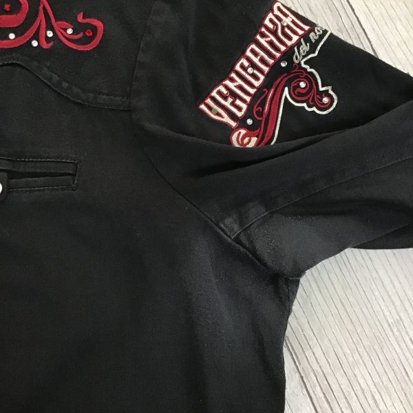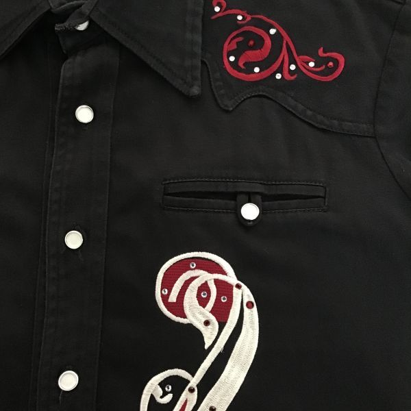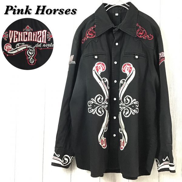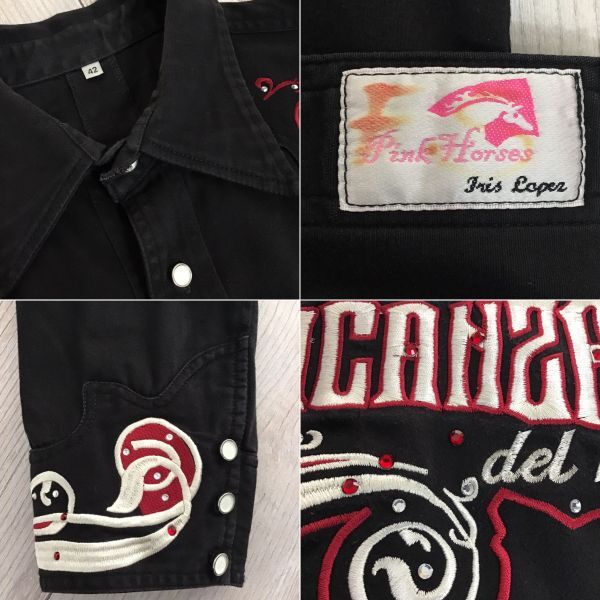 ★レア★【Pink Horses ピンクホース】豪華刺繍 ラインストーン ウエスタンシャツ [42]黒 カントリーダンス 衣装 ステージ バイカー K-445