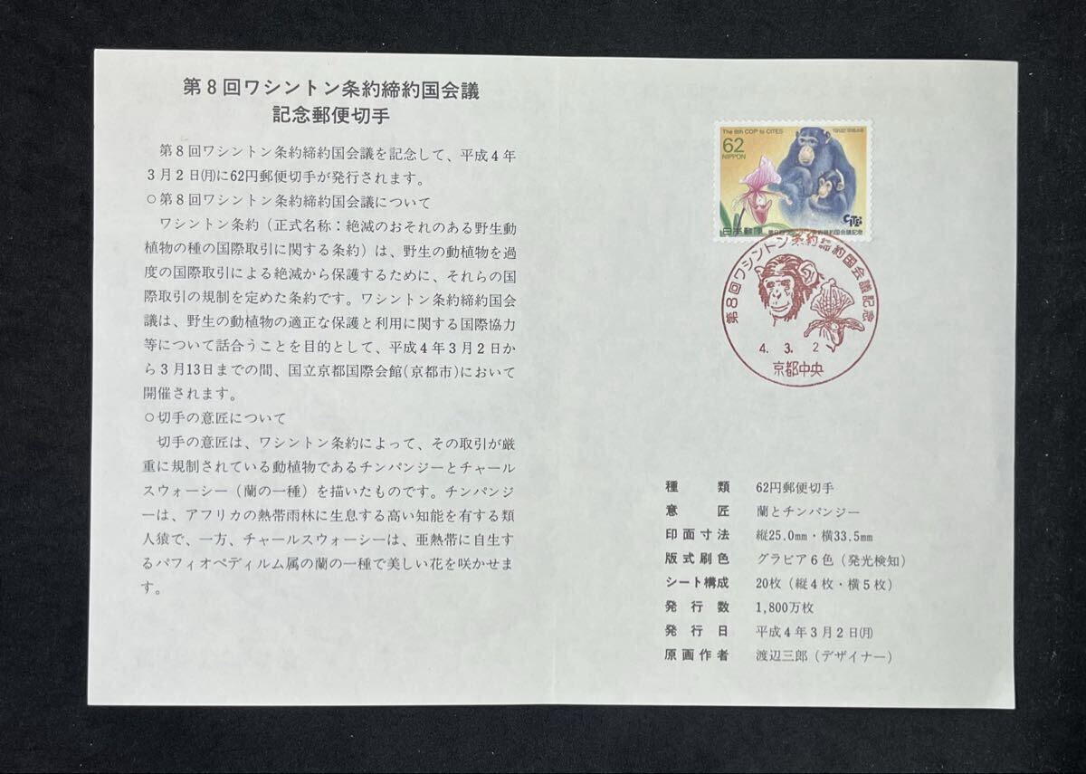 「第8回ワシントン条約締約国会議記念切手」62円単貼
