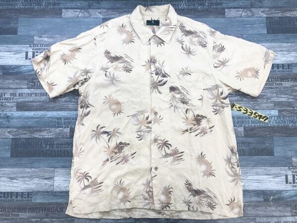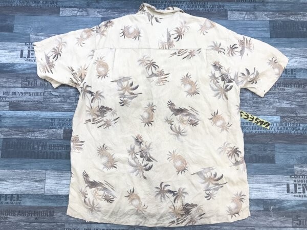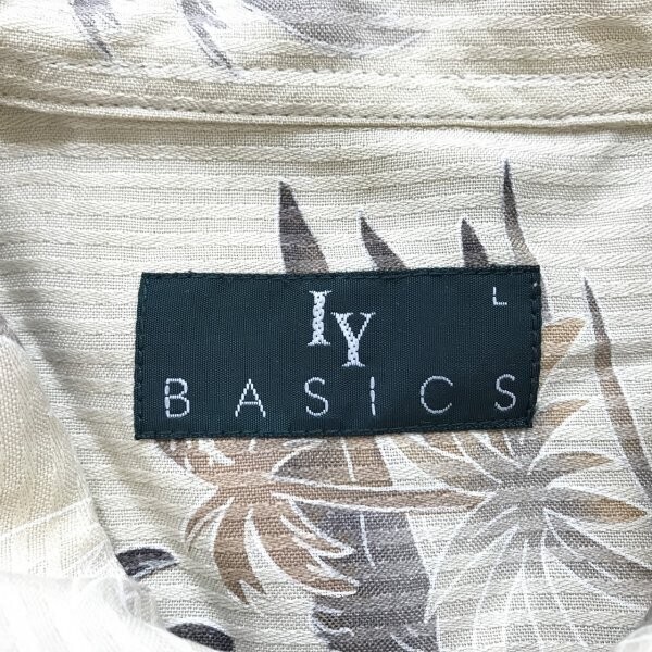 IY BASICS メンズ ストライプ パイナップル 南国 半袖シャツ L ベージュ です。