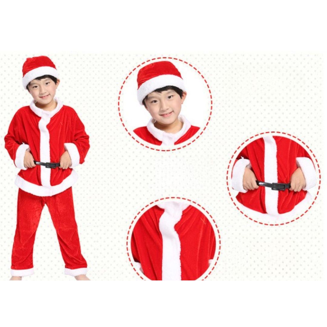 サンタクロース 衣装4点 150サイズ 子供用男の子 クリスマス スーツ サンタ コスプレセット コスチューム 着ぐるみ 帽子 ベルト 上着ズボン