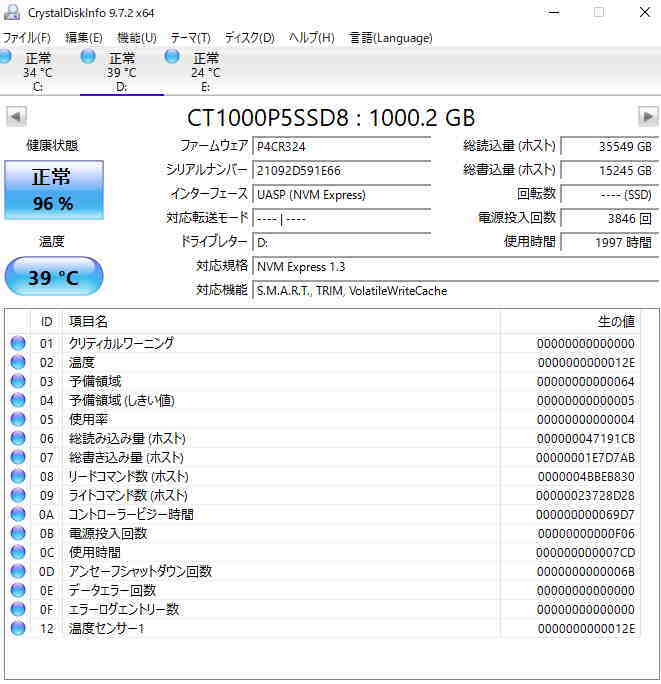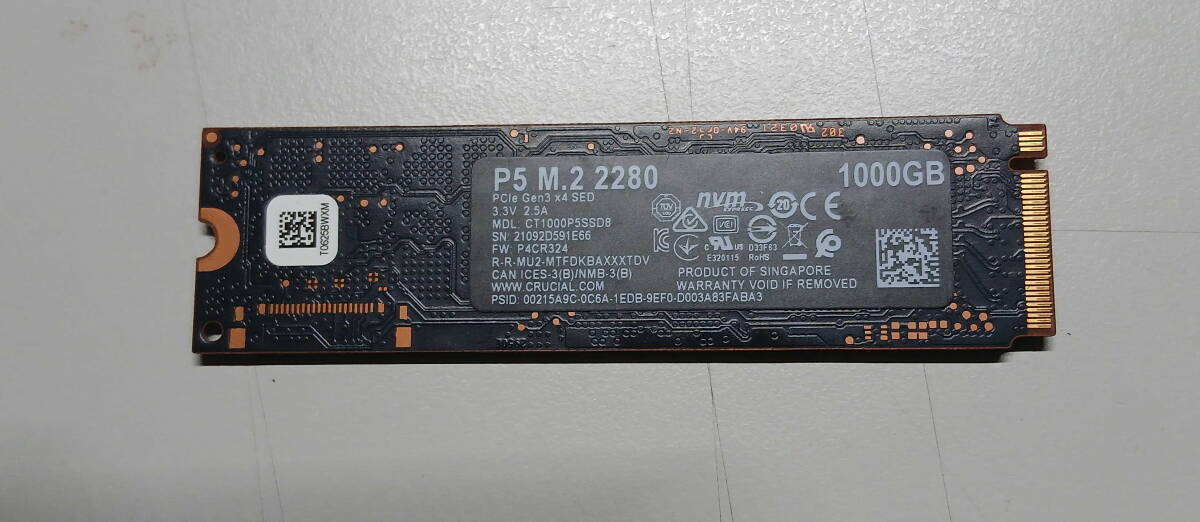 Crucial P5 1TB M.2 2280 中古 ジャンクです。ジャンク理由は外してから2週間たっているので心配なのでジャンクです。送料無料安くから出品しますのでノークレームノーリターンでお願いします。CrystalDiskinfoでは画像の通りです。