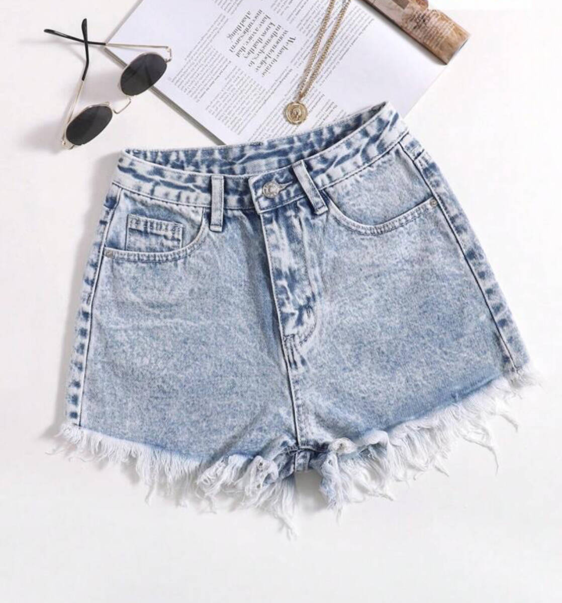 | レディース ルーズ カジュアル ダメージ加工 デニム ショートパンツ ズボン SHEIN ショーパン パンツ ブルー 水色 ダメージジーンズ EZwear |