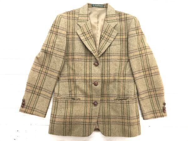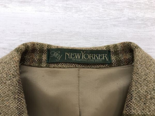 ニューヨーカー NEWYORKER トラッド アイビー くるみボタン ウール混 チェック ツイード テーラード ジャケット レディース 9AR ベージュ です。