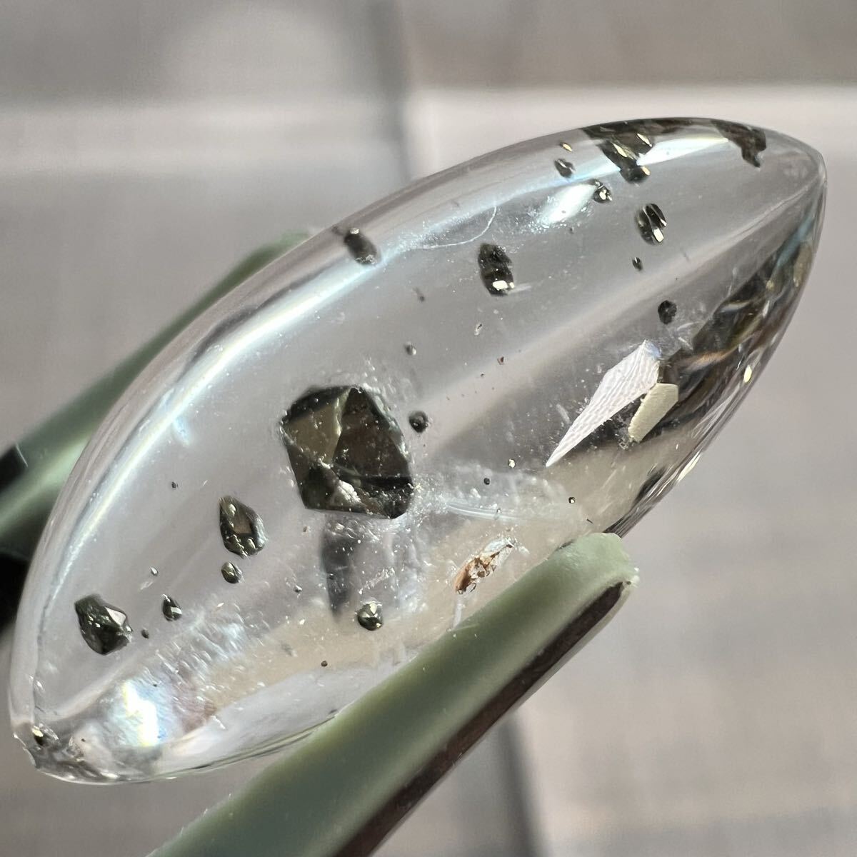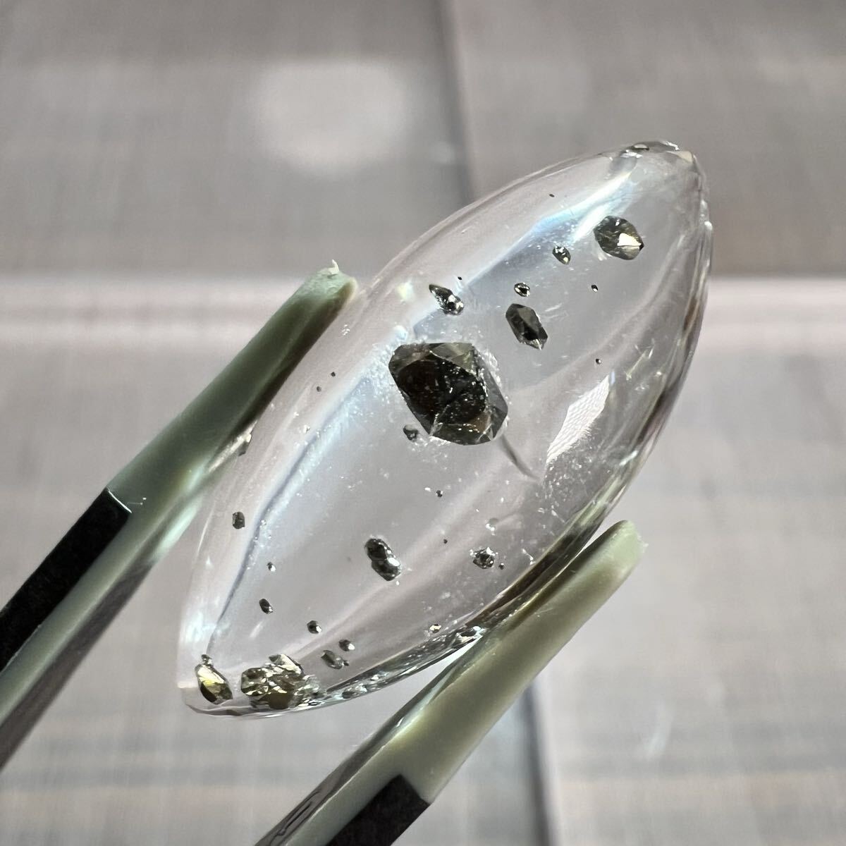クリアなクォーツの中に、無数のパイライトがキラキラと輝く美しいルースです。