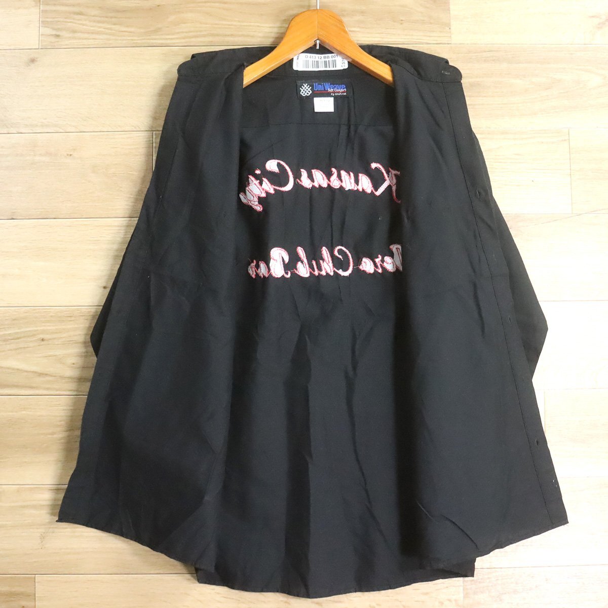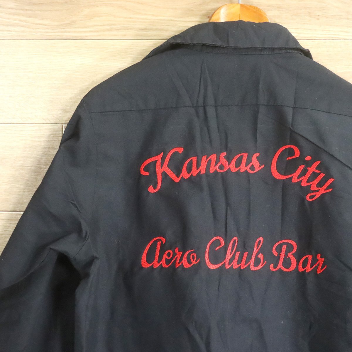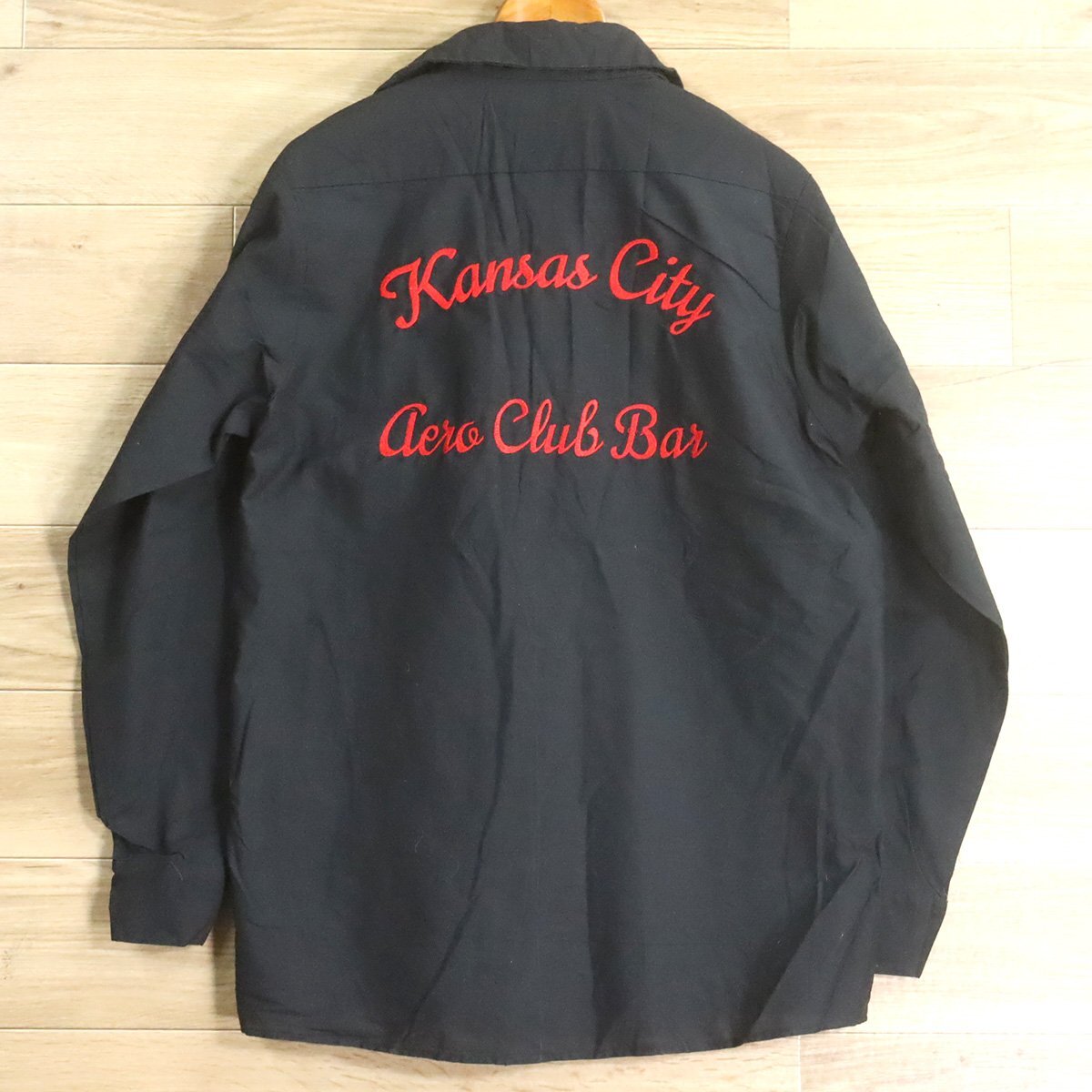 $2T/S11.4 アメリカ古着 Uniwear ワークシャツ M位 文字 バック刺繍 KANSAS CITY AERO CLUB BAR