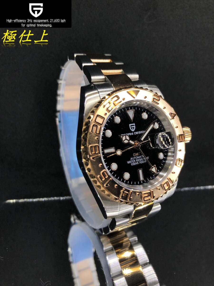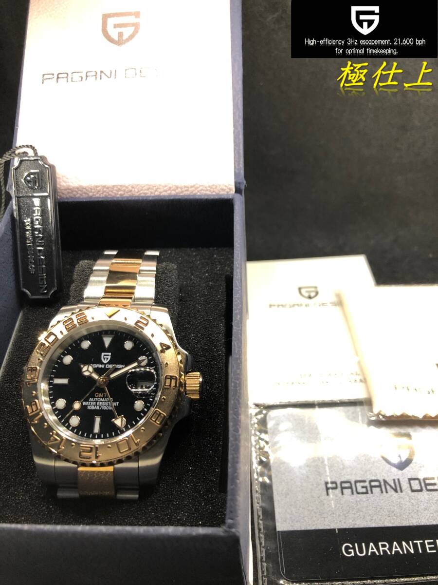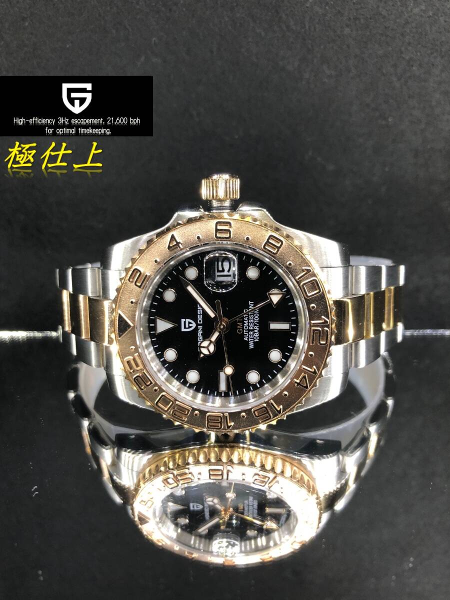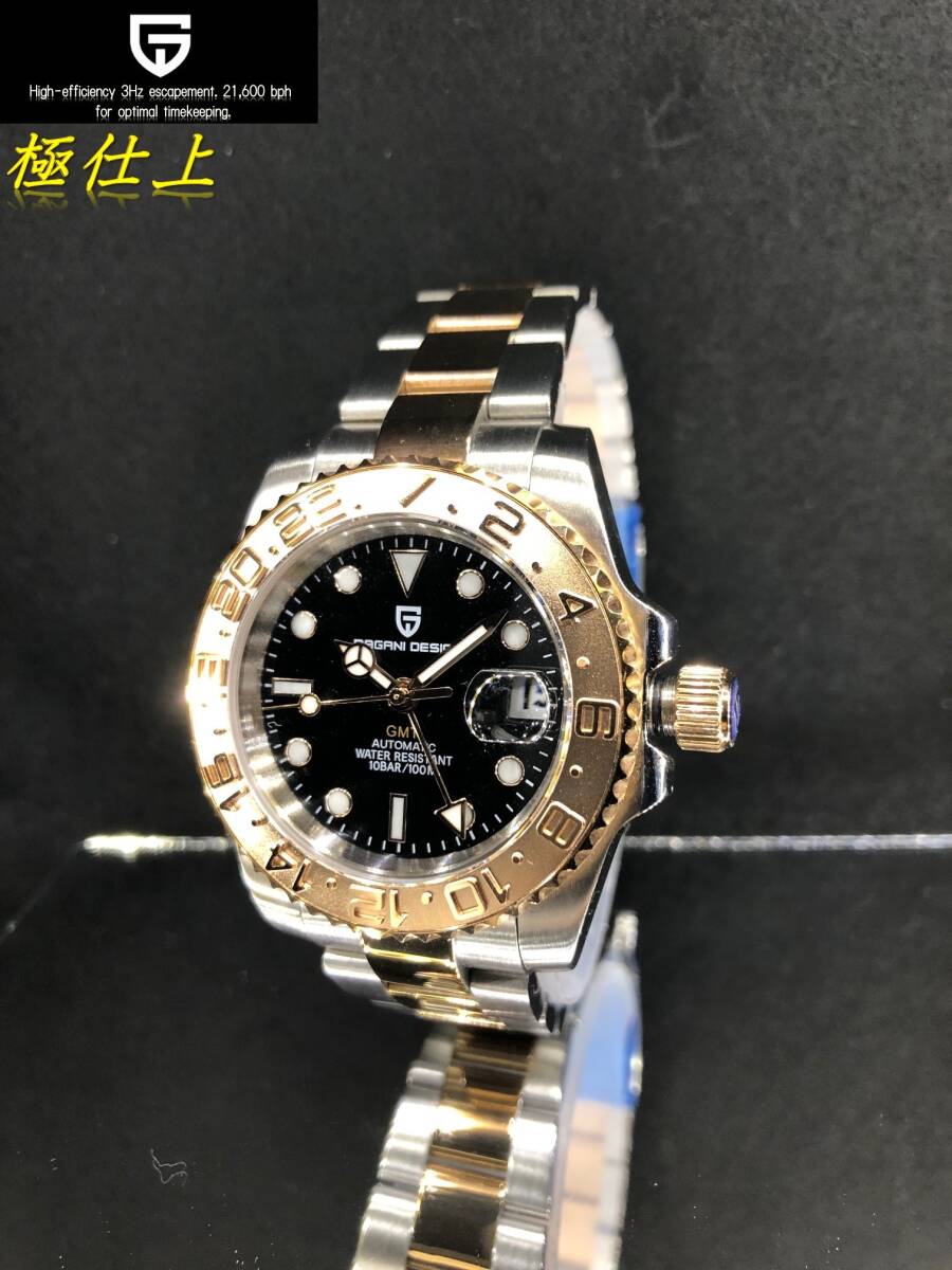 ■極仕上/調整済/10日保証/新品に極めて近い1回使用USED/中古品/GMTマスターⅡオマージュ/コンビ/ゴールドベゼル](機械式)黒/24h逆算計