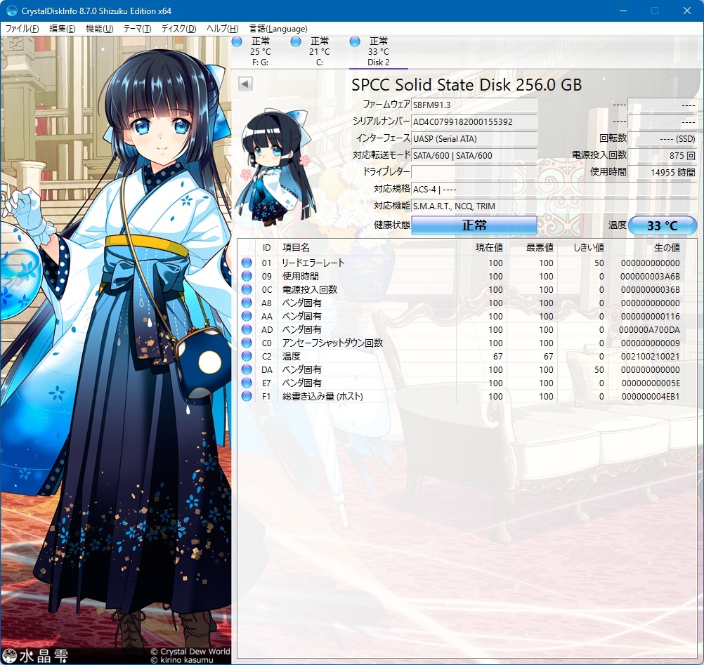 SP256GBSS3A55S25 [Ace A55 2.5インチ 7mm SATA 256GB]