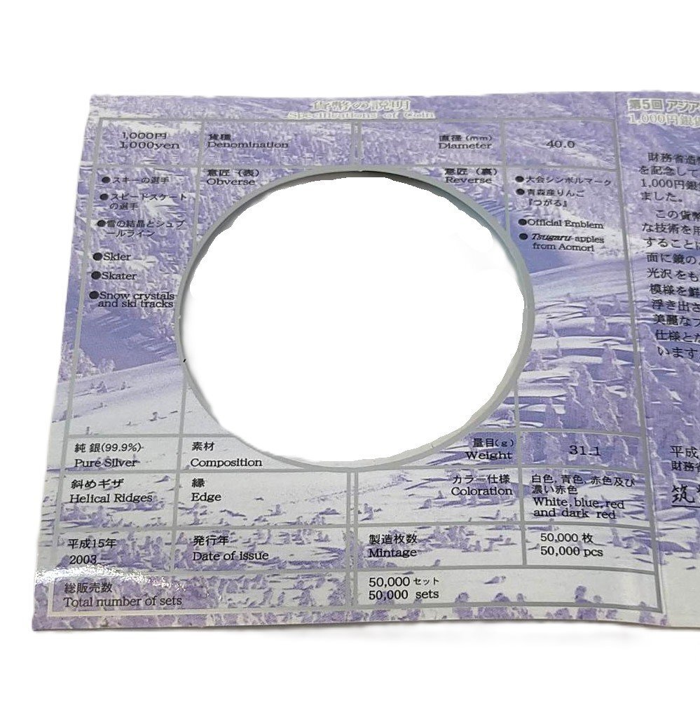 ●商品名:第5回 アジア冬季競技大会 青森 2003年 千円銀貨幣 2個セット
